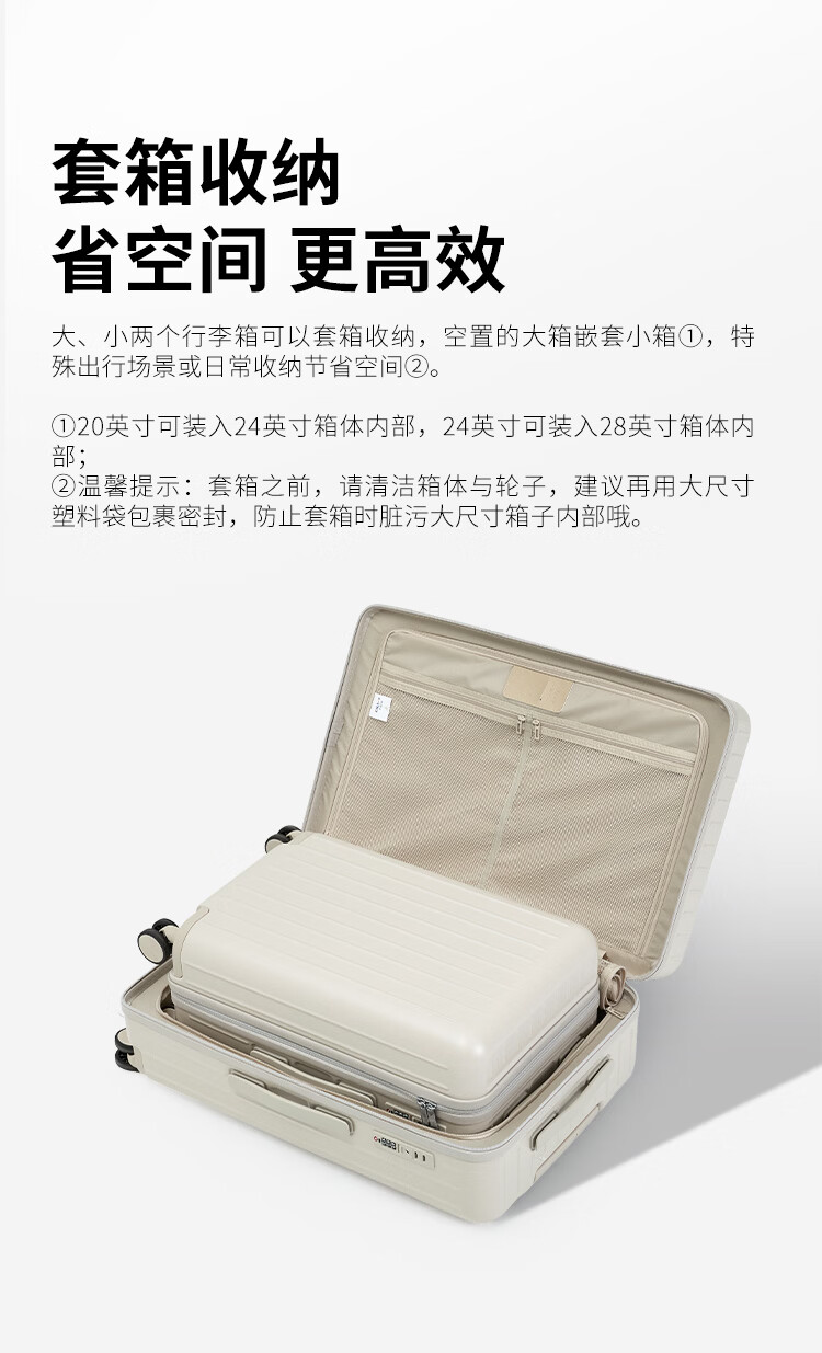 爱华仕(OIWAS)方糖箱大容量轻便拉杆箱密码登机行李箱旅行高颜值皮箱 白色 【防爆密码锁】 【防刮花】 24英寸 【3-5天中途行】