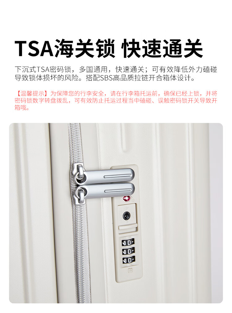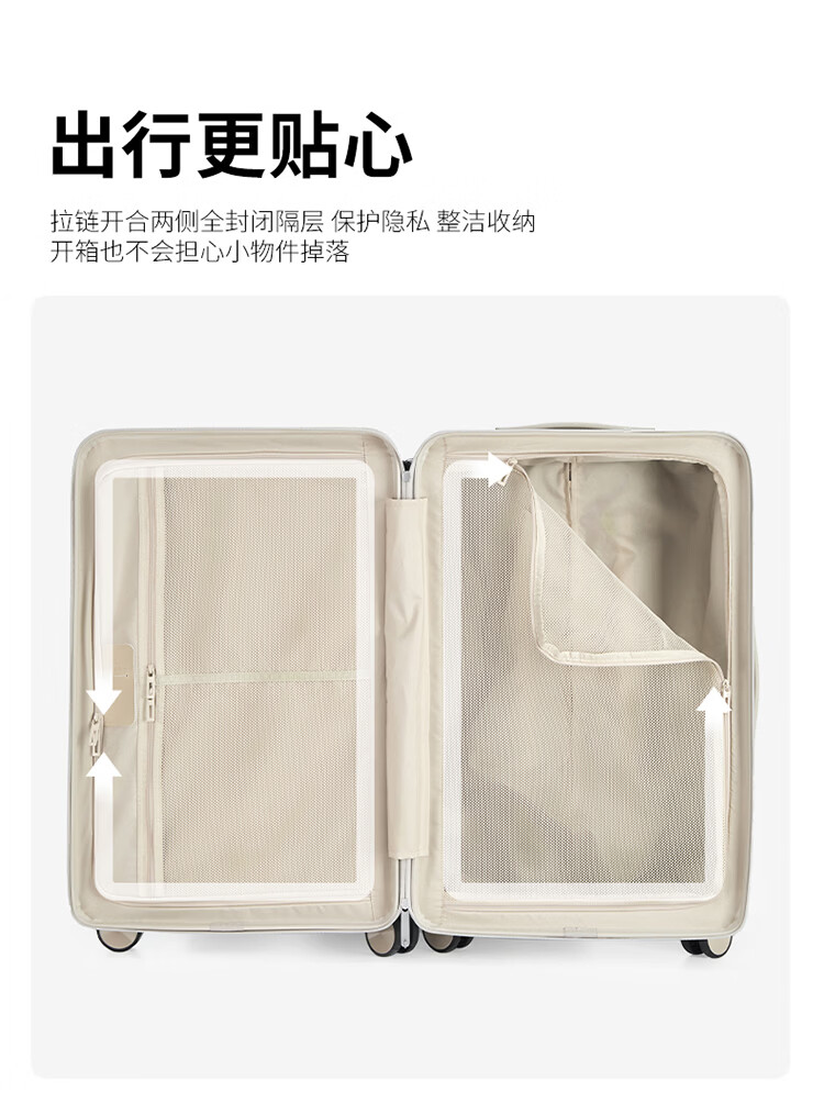 友胜保罗2025新款学生轻便行李箱旅行箱女童骑行多功能小型可爱登机箱皮箱 米白色【20寸 六轮加固登机款】