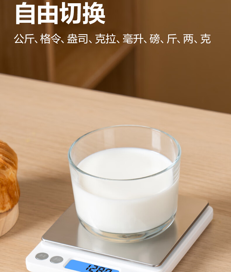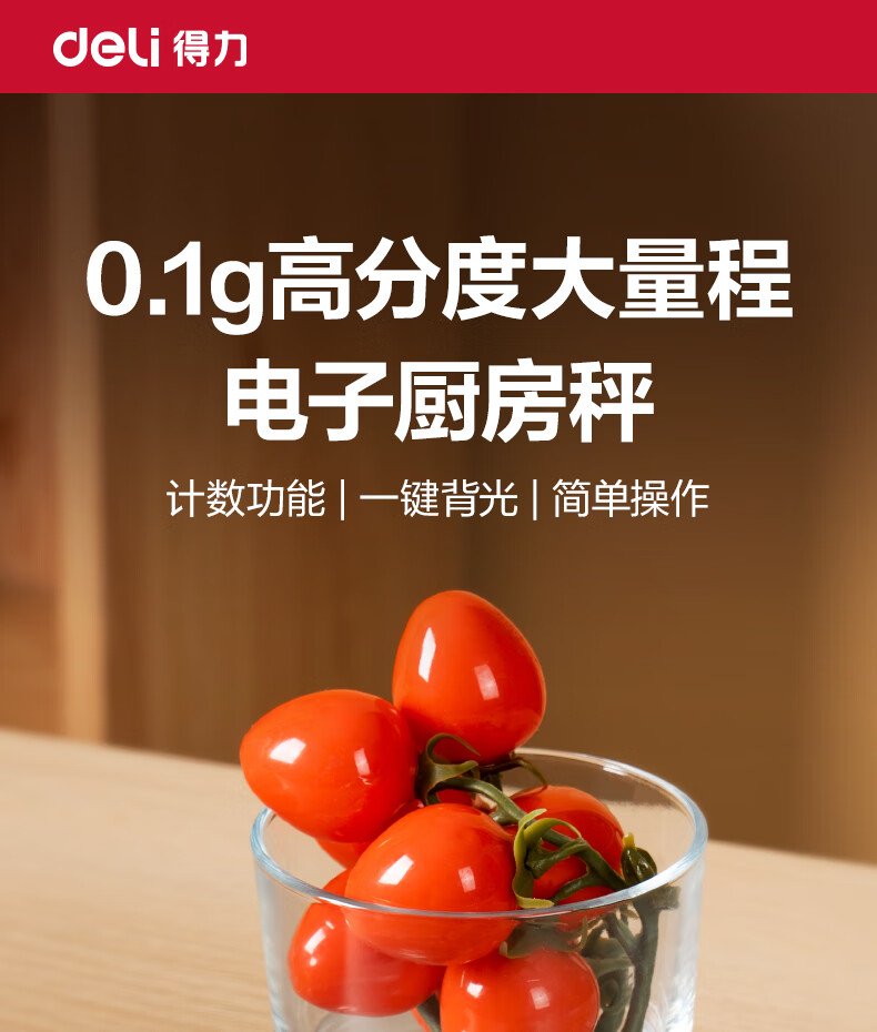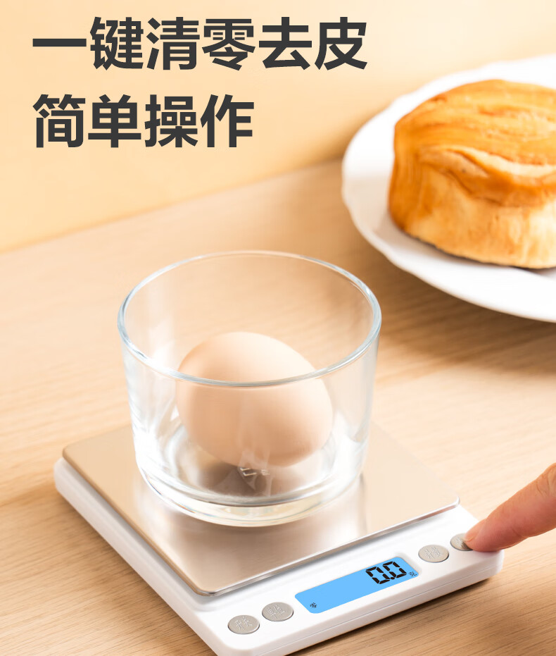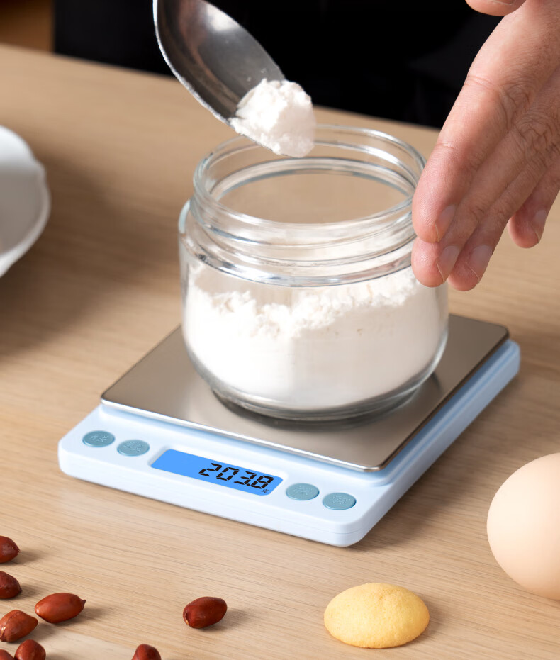 得力【新品限时特惠】电子秤厨房秤克重食物烘焙家用0.1g/3kg电子秤白