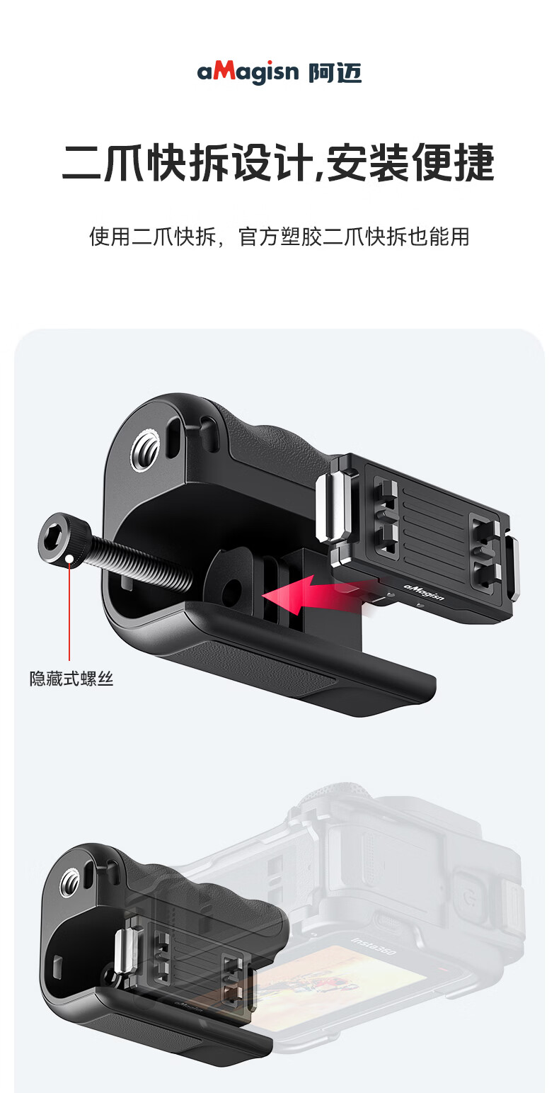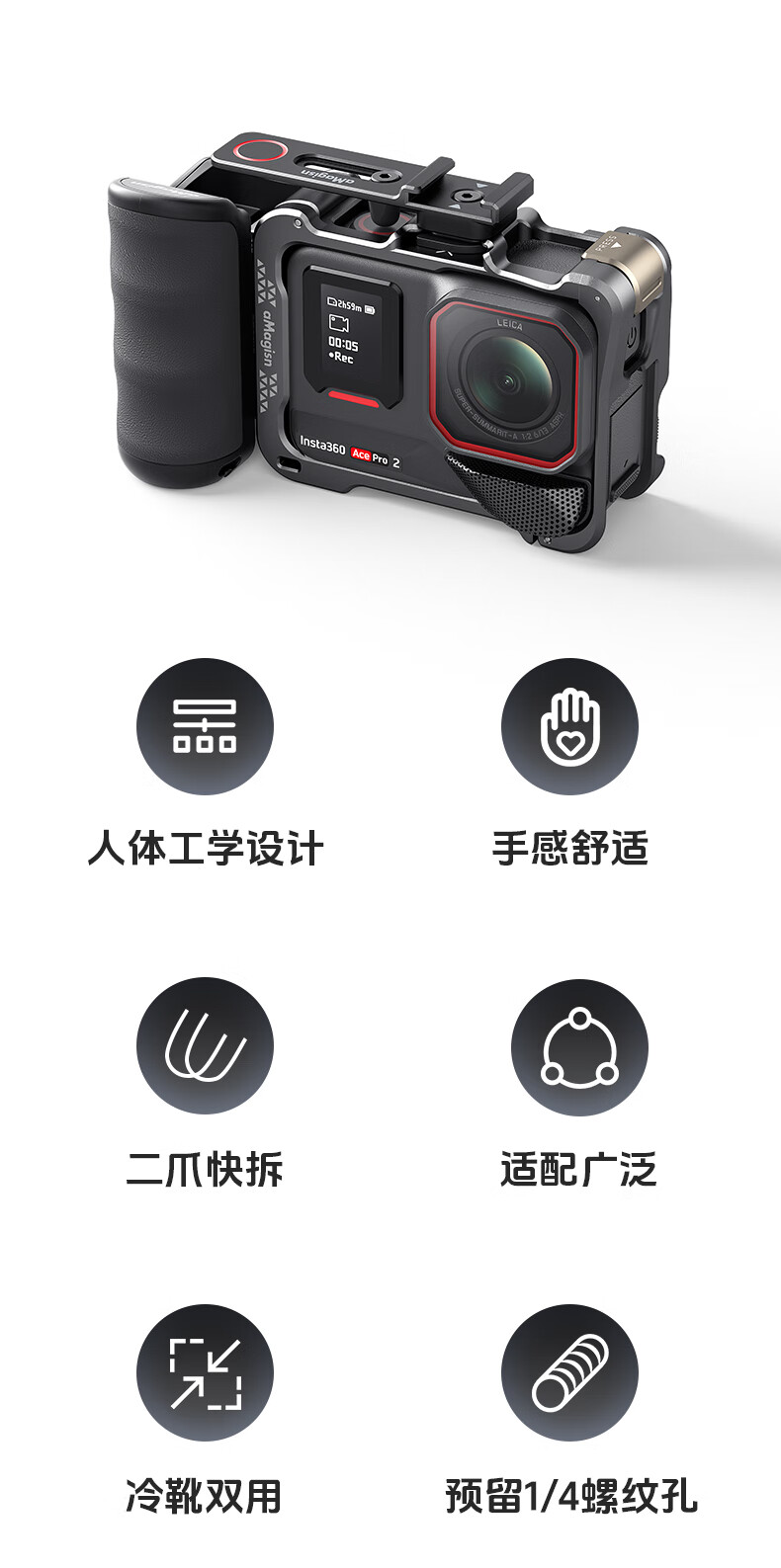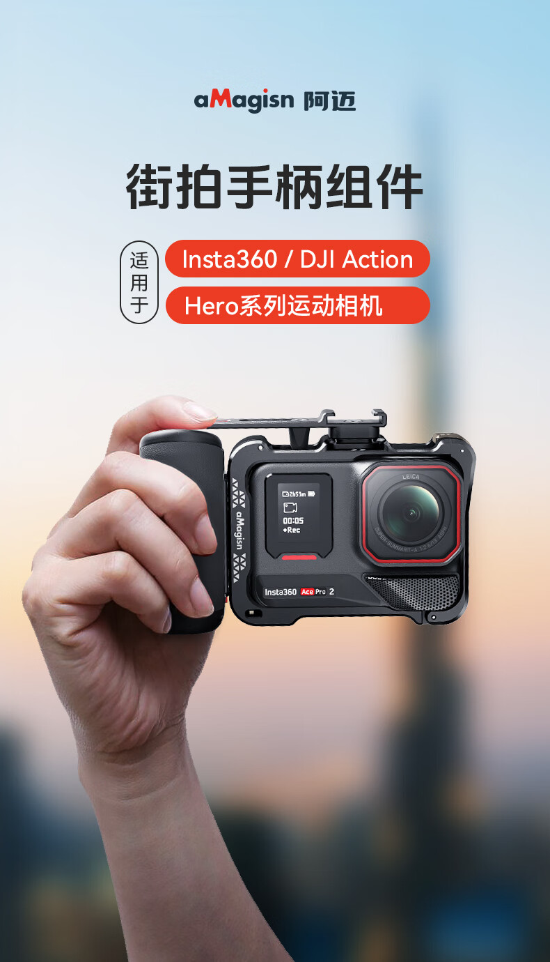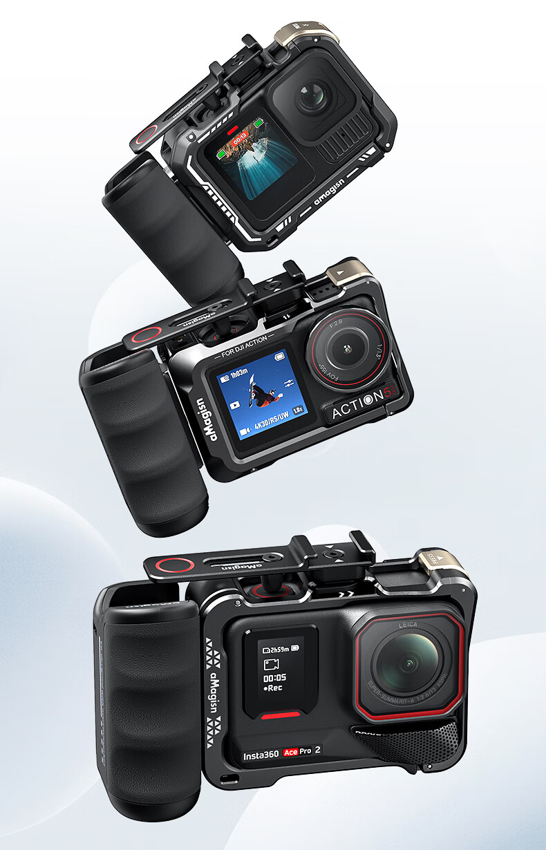 aMagisn(阿迈)街拍手柄套装适配影石AcePro2/1系列/大疆Action5Pro/action4/3/GoPro通用运动相机配件 【旧款塑料安装视频】要快拆+兔笼