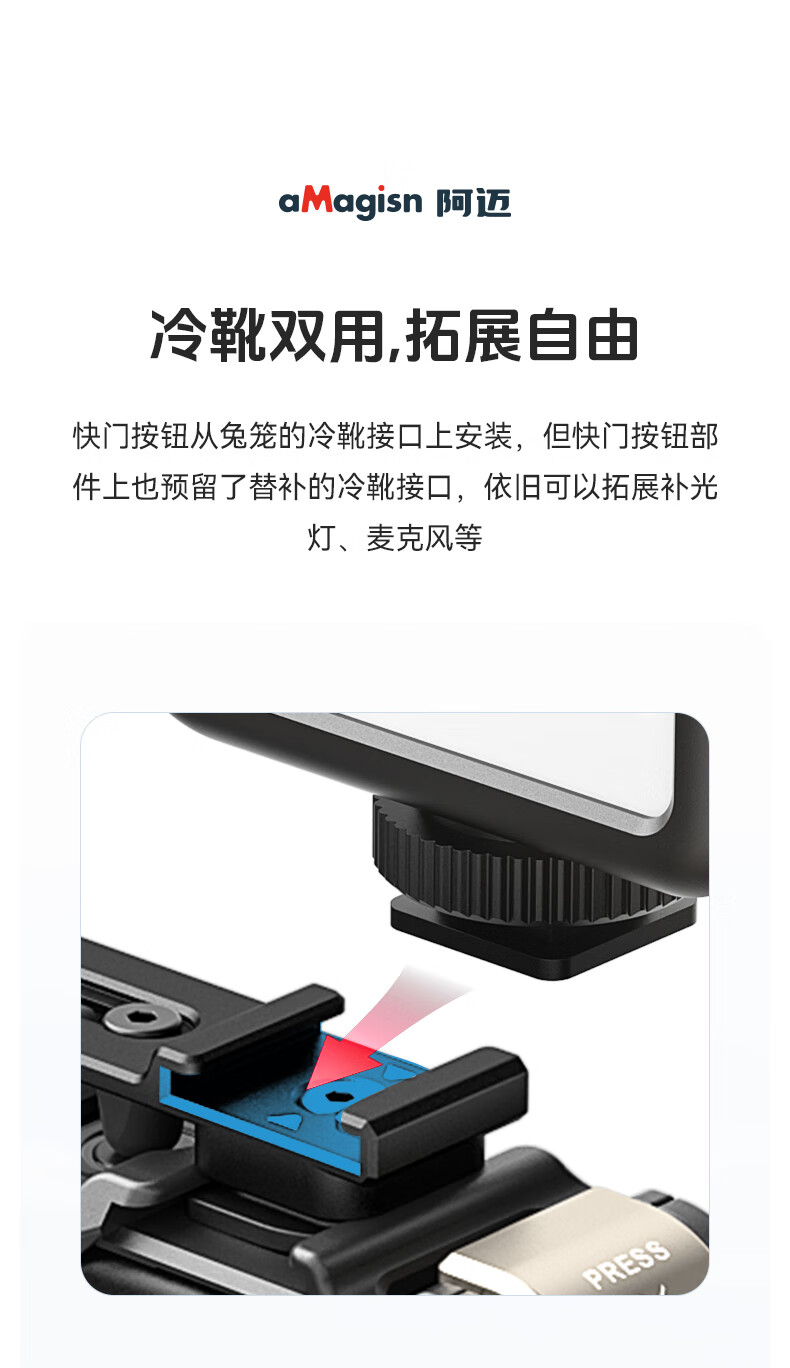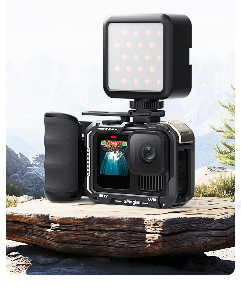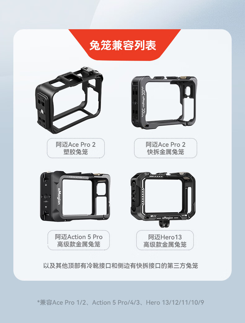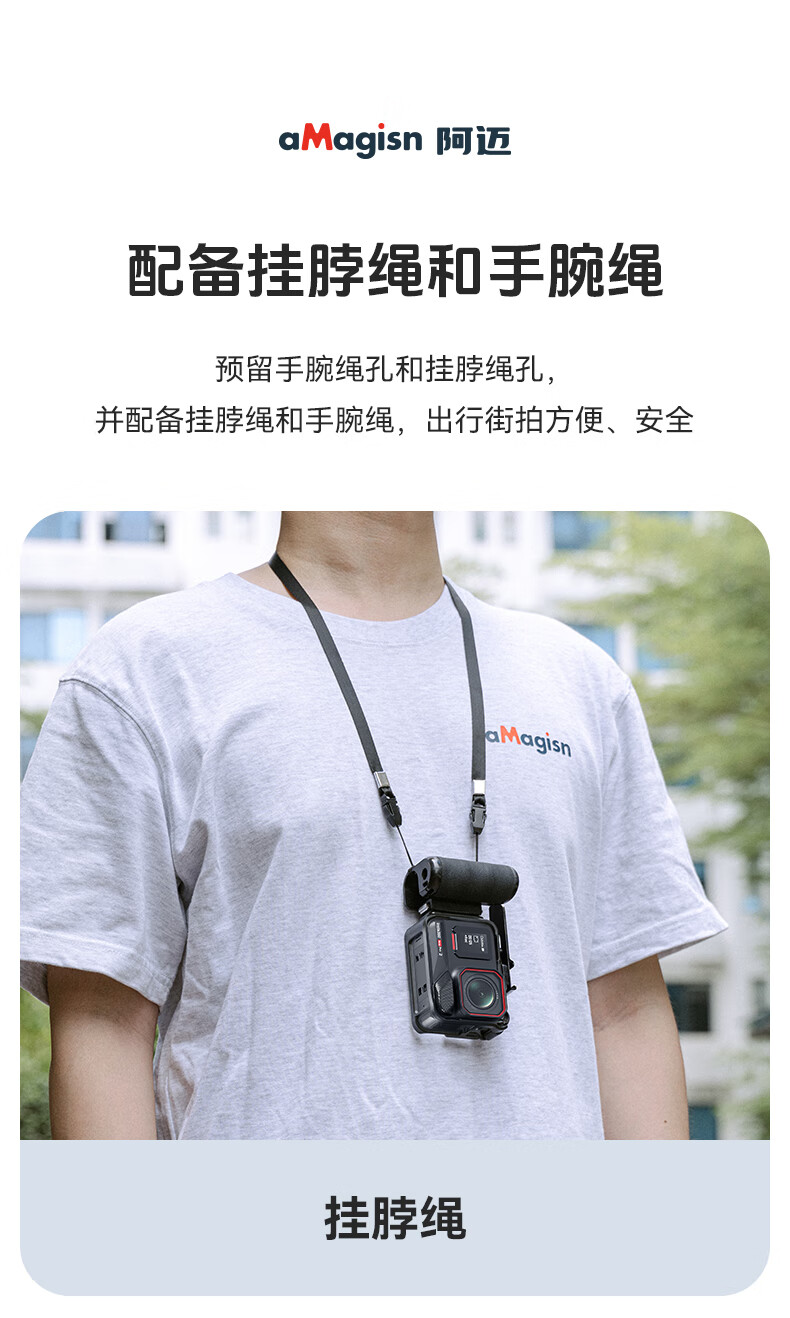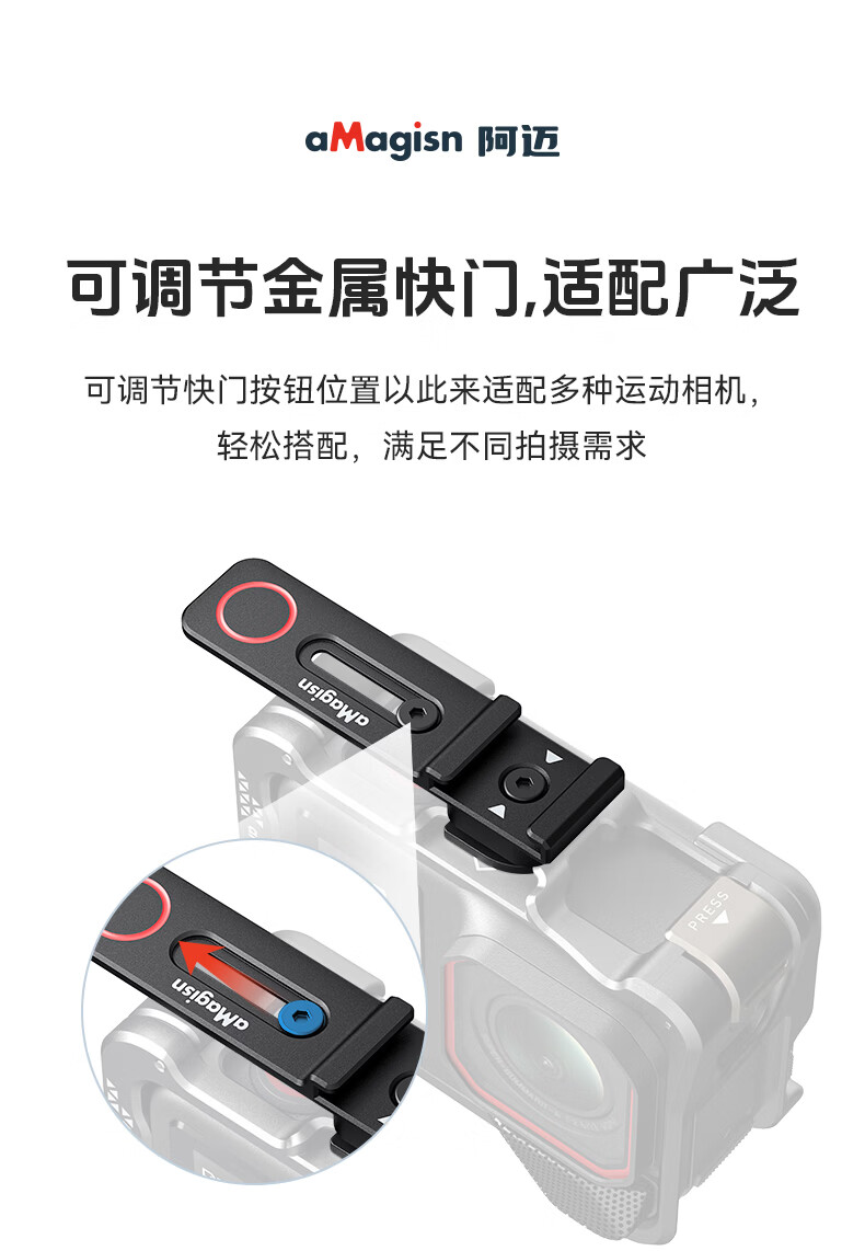 aMagisn(阿迈)街拍手柄套装适配影石AcePro2/1系列/大疆Action5Pro/action4/3/GoPro通用运动相机配件 【旧款塑料安装视频】要快拆+兔笼