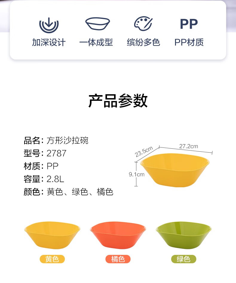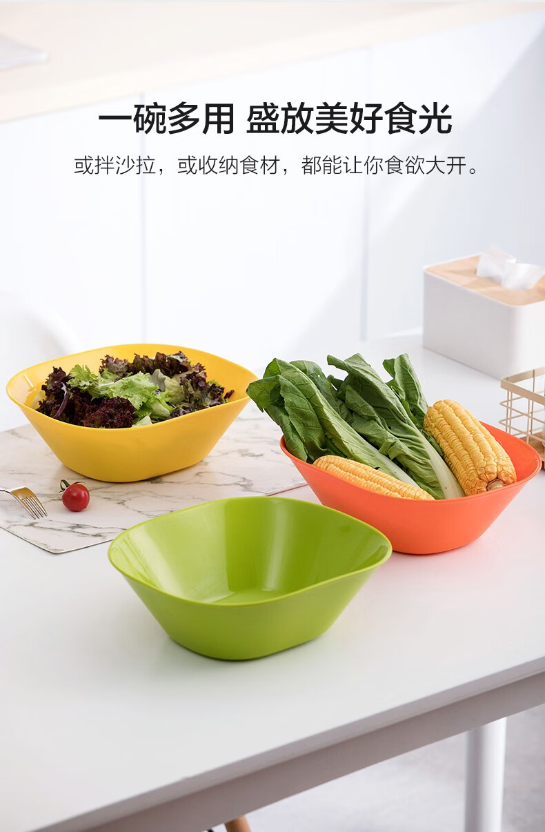 茶花【甄选好物】水果盘果盆客厅创意沙拉水果盆塑料洗水果盆时尚沙拉 方形(绿色)
