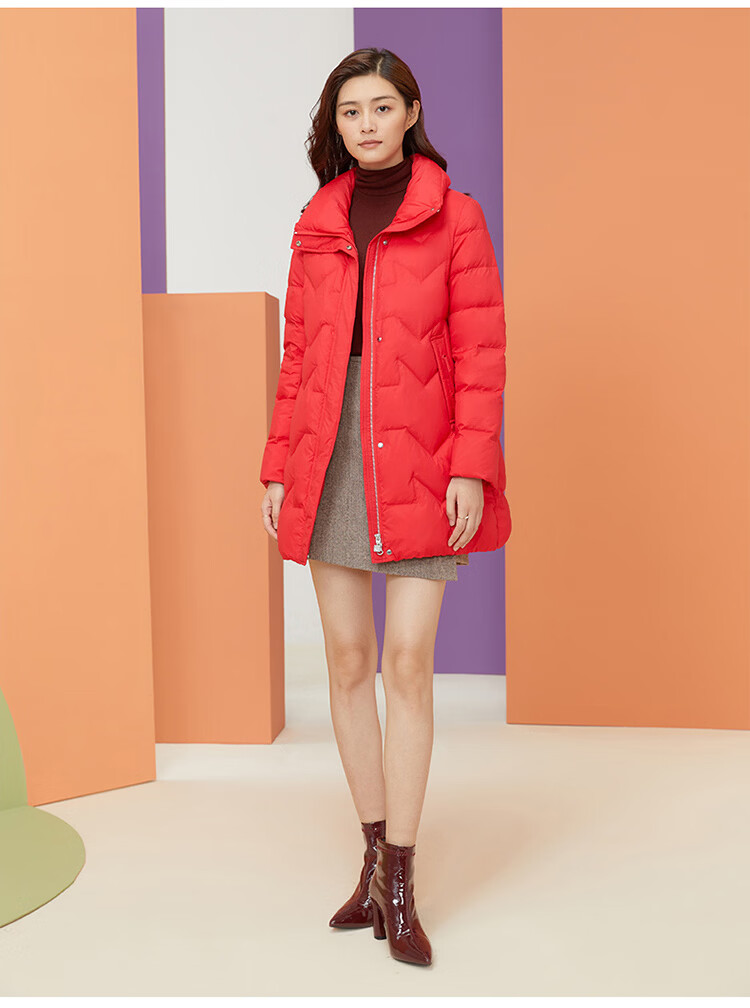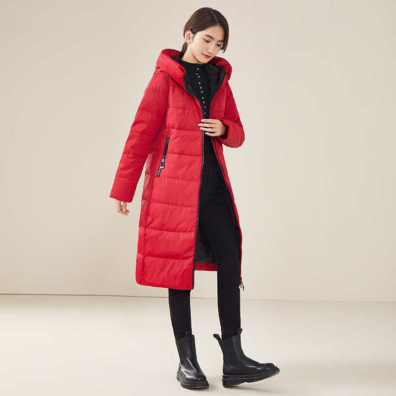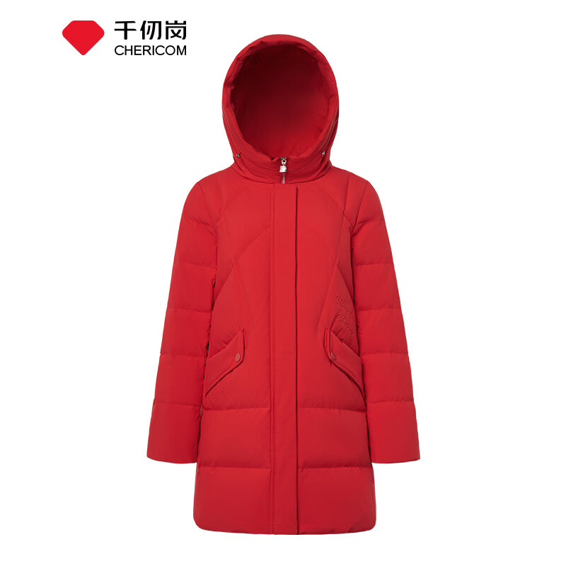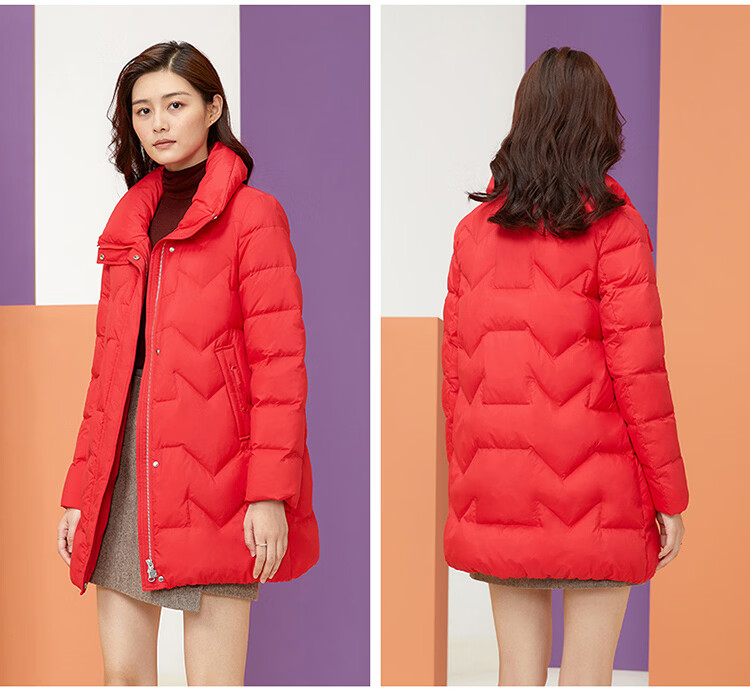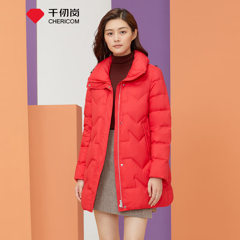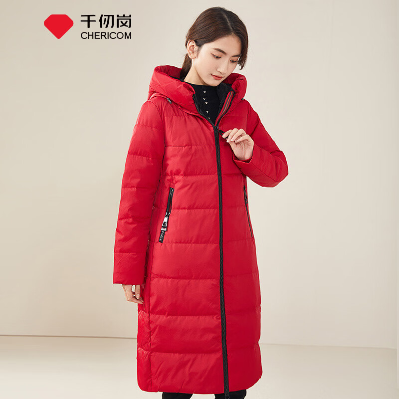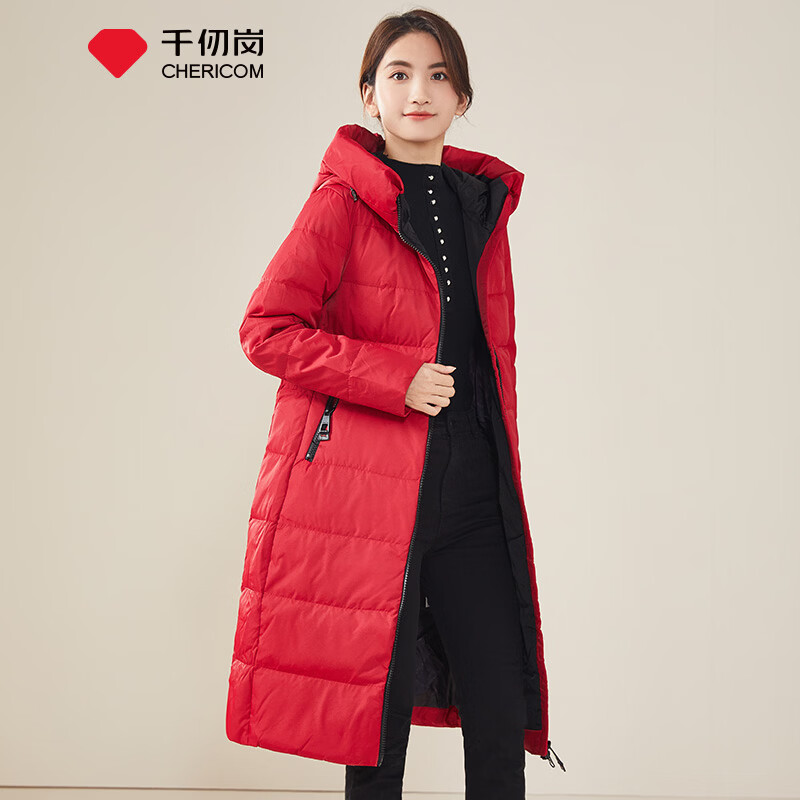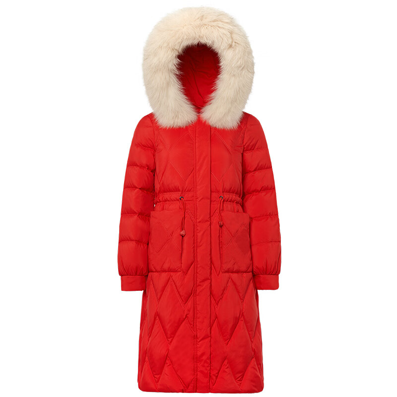 千仞岗【羽绒清仓】新年红色鸭绒服女士中长款外套中年妈妈装保暖防寒服 富贵红 Y239033Y M (165)