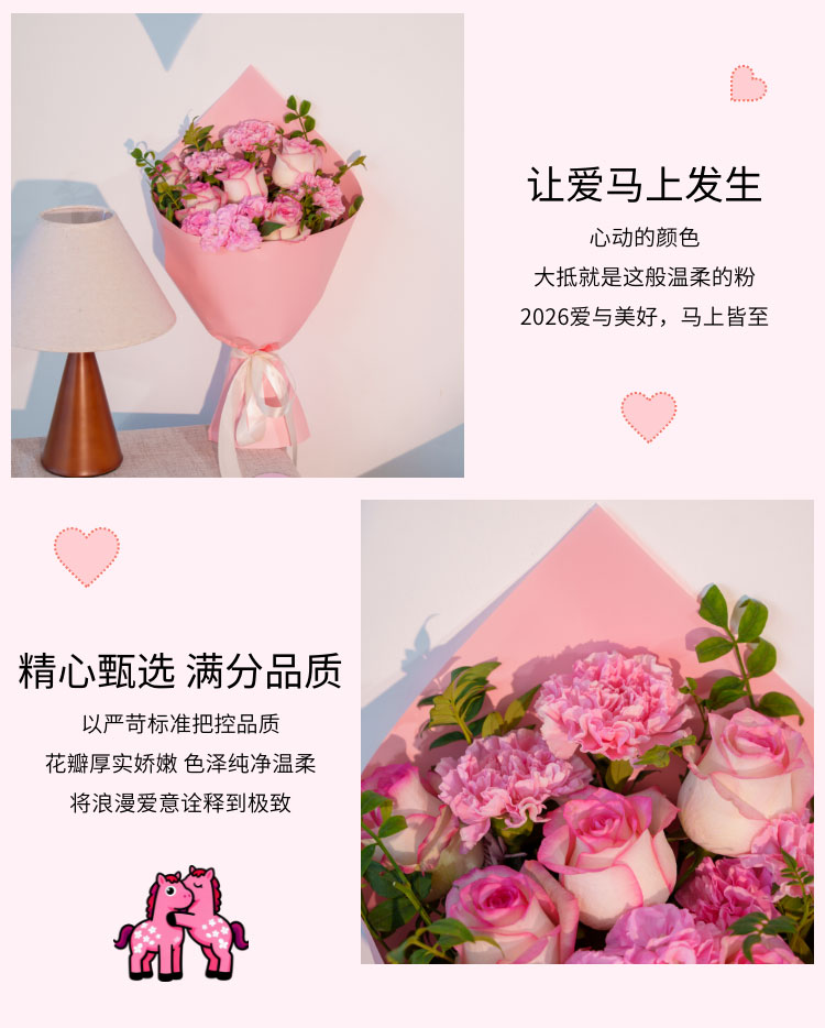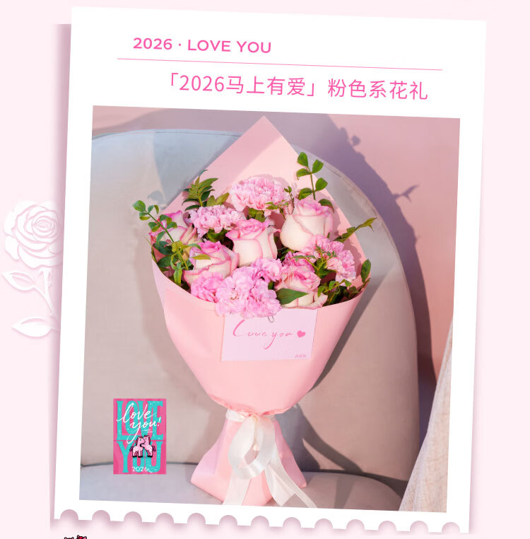 京东鲜花粉色系混合礼品花束情人节礼物送女朋友送老婆源头直发