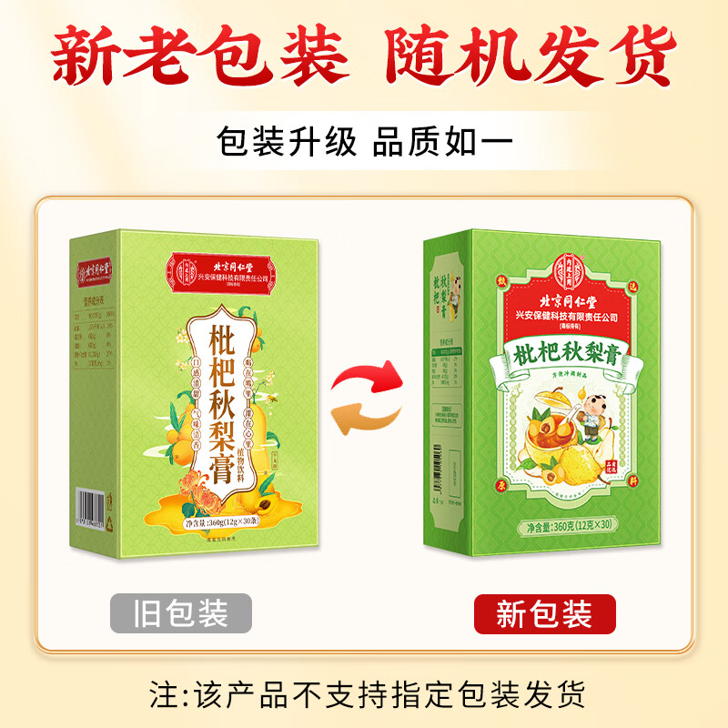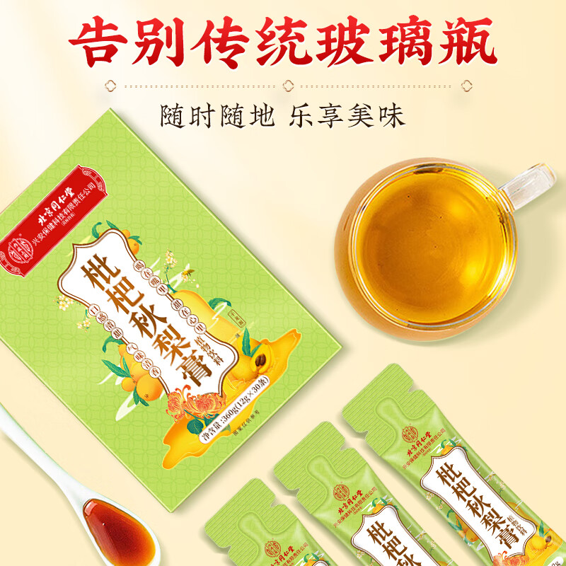 同仁堂(TRT)枇杷秋梨膏润肺蜂蜜百合秋梨膏儿童成人冲泡水喝12g*30支