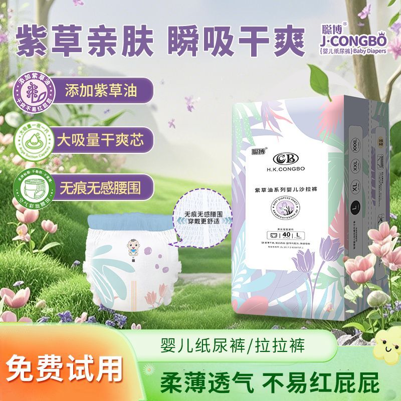 【不易红臀】聪博紫草油纸尿裤拉拉裤宝宝超薄透气婴儿尿不湿批发
