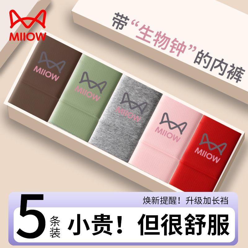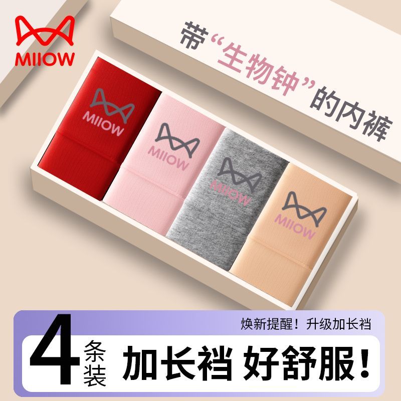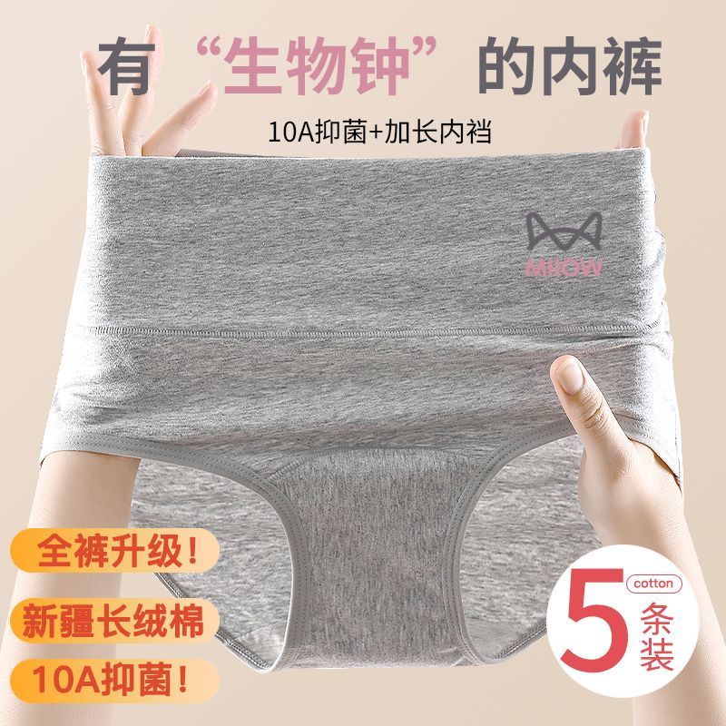 猫人高腰收腹纯棉女士生物焕新标内裤10A抑菌加长全棉内裆三角裤