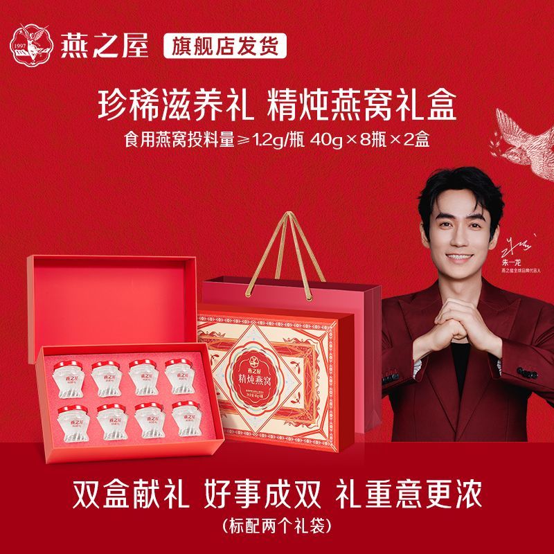 【年货礼盒】燕之屋精炖燕窝40g*8瓶*2盒1.2g投料鲜炖即食营养品