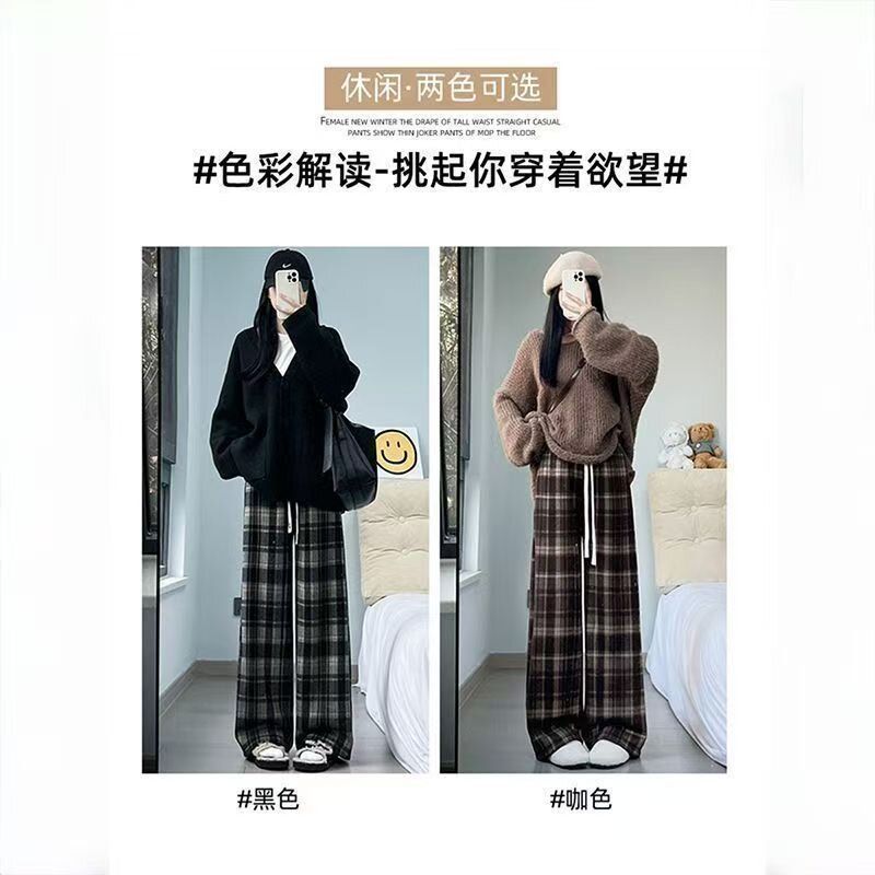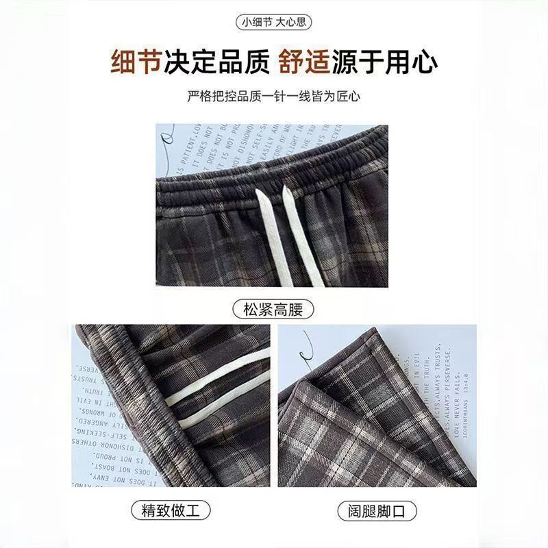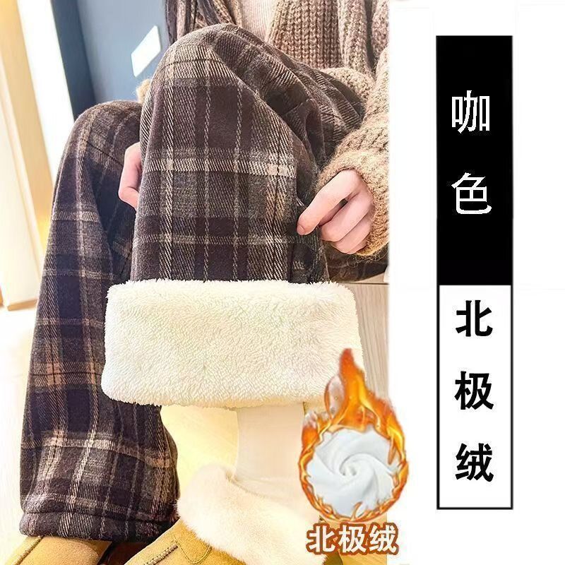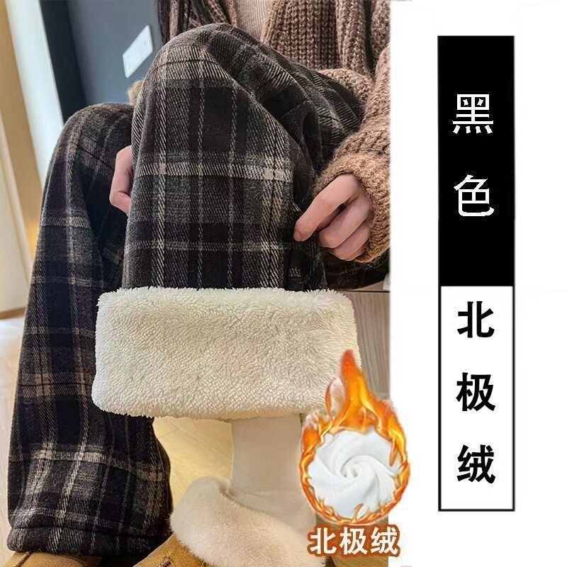 复古羊羔绒格子裤女毛呢秋冬新款加绒2026加厚高腰棉裤阔腿裤百搭