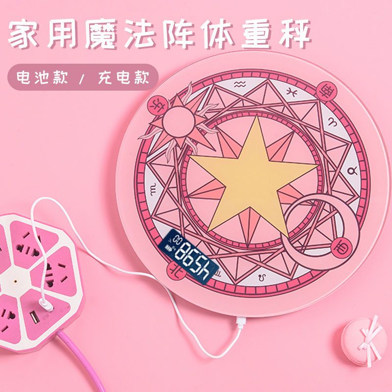 沐韩USB充电电子秤魔法阵体重秤学生卡通秤人体秤称重精准减肥秤