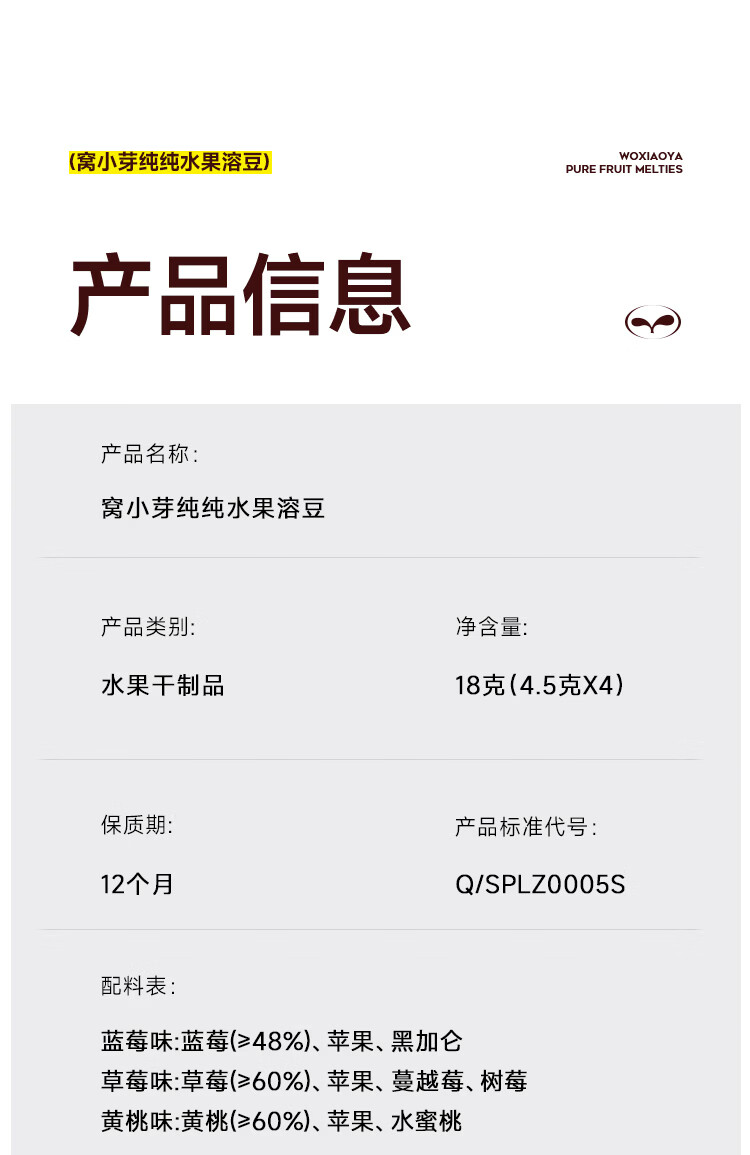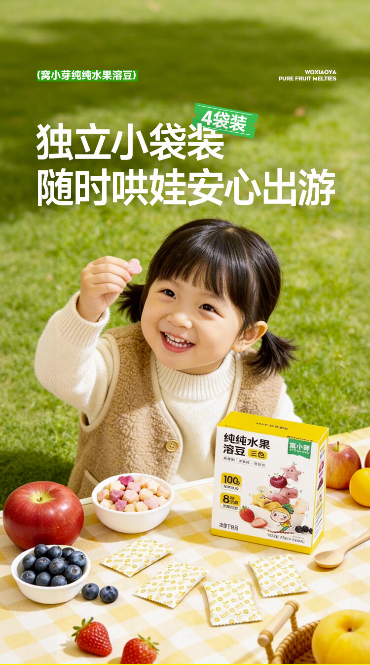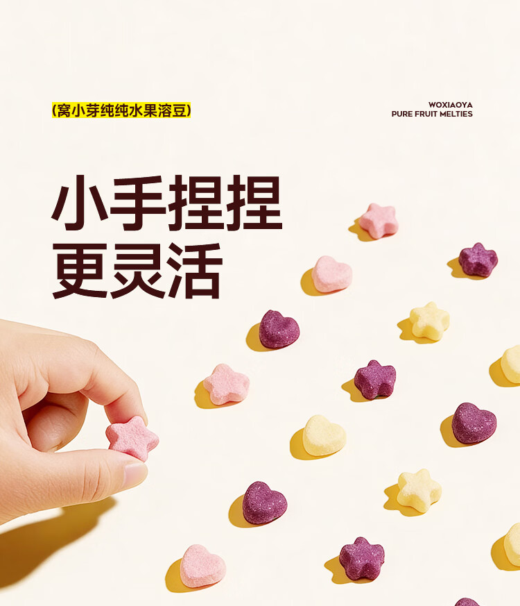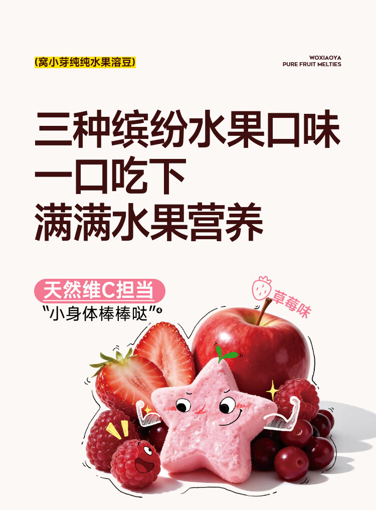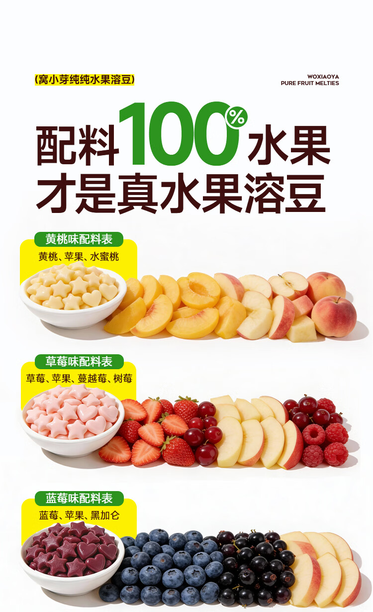 窝小芽 水果溶豆小奶豆草莓易溶0添加糖儿童宝宝零食享婴幼儿6个月+食谱 纯纯水果溶豆18g*4盒