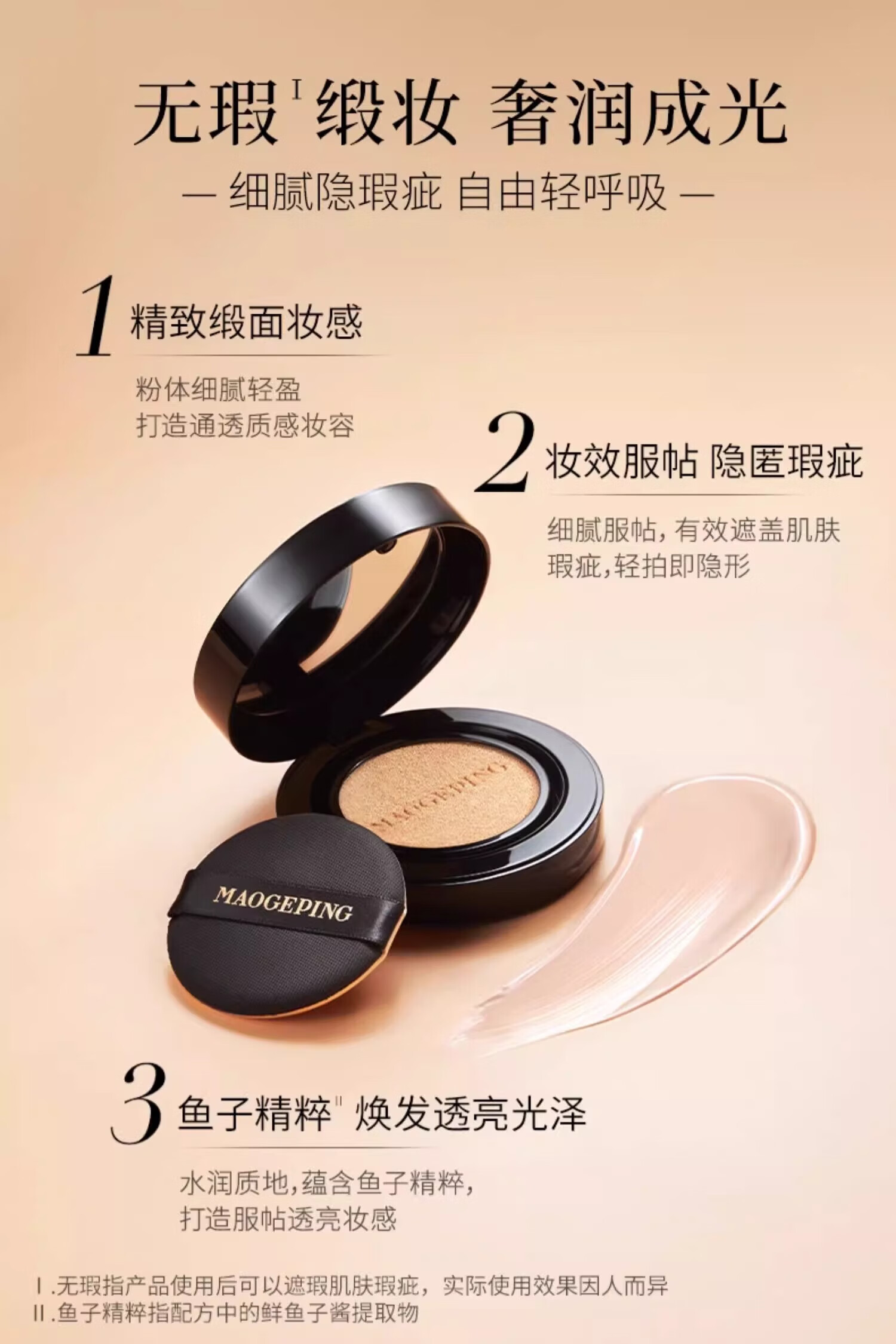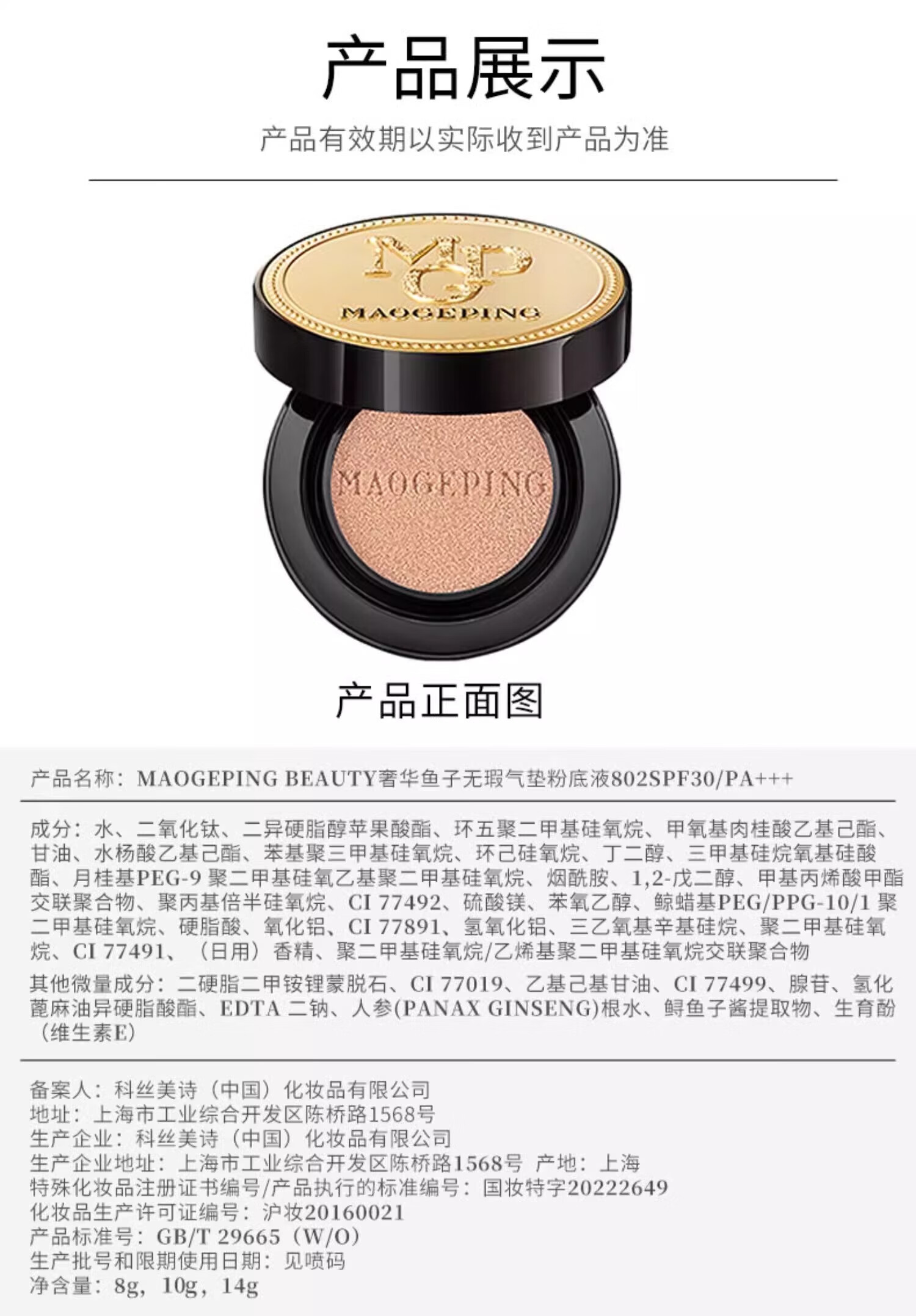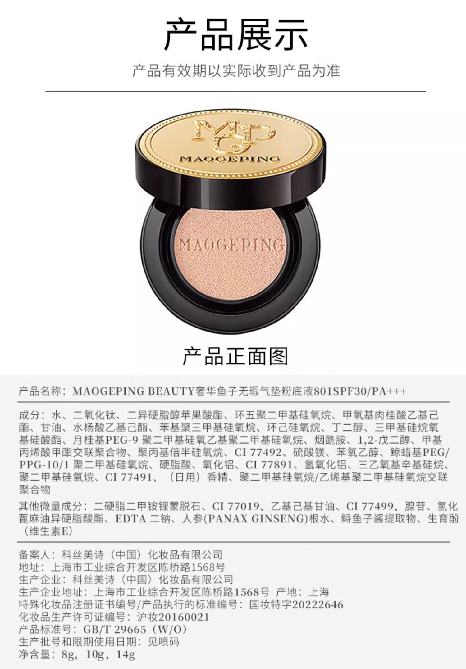 毛戈平(MAOGEPING)801白皙色鱼子酱气垫粉底液14g+替换装14g遮瑕控油【临期清仓】
