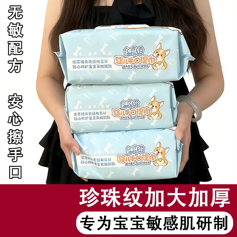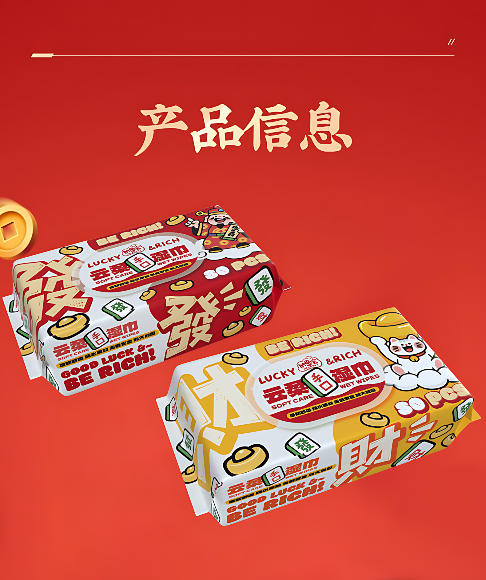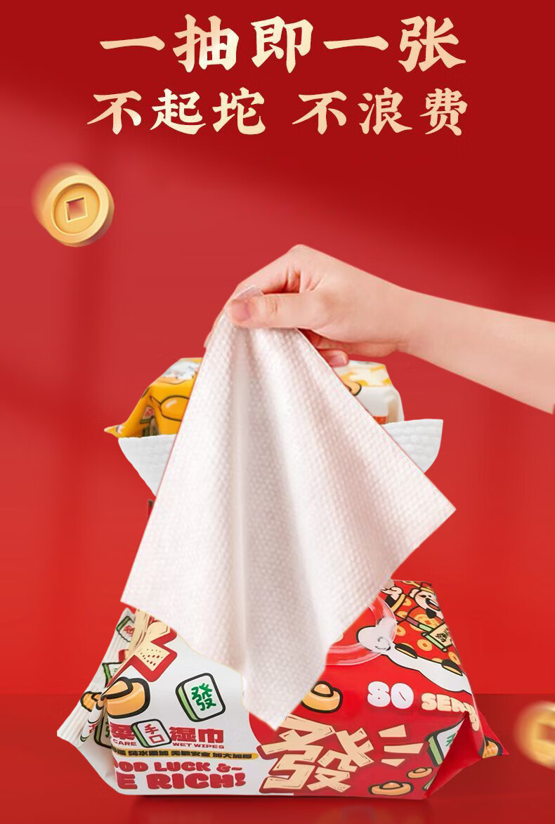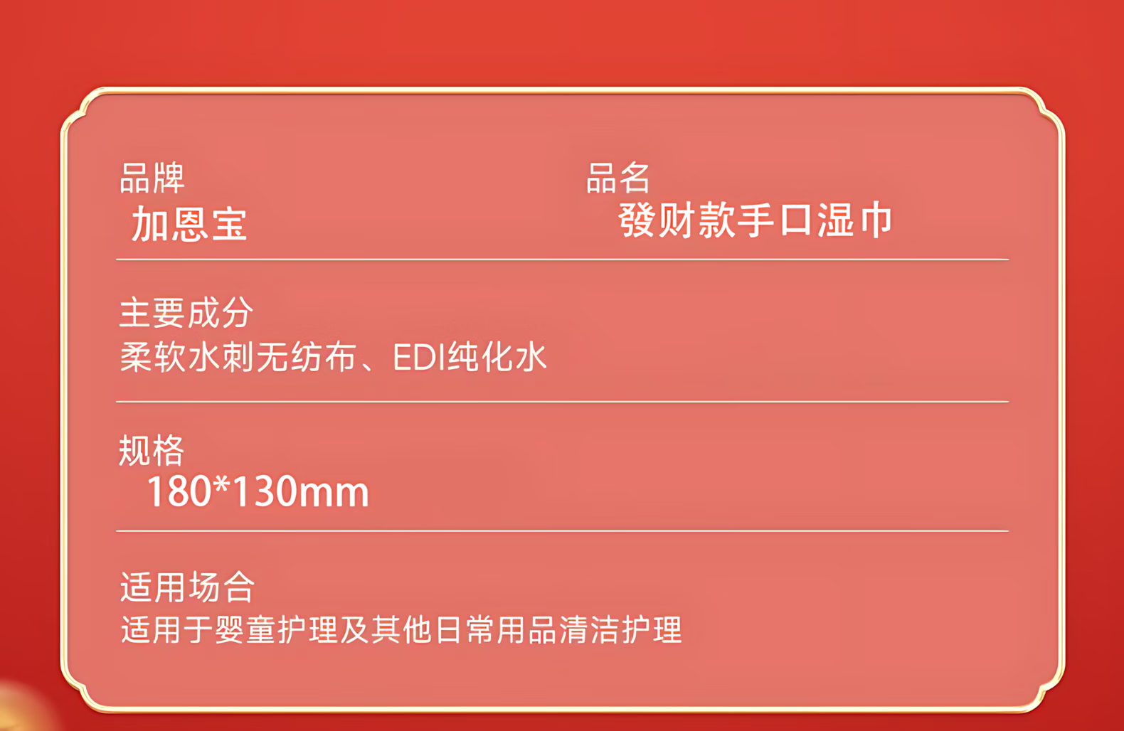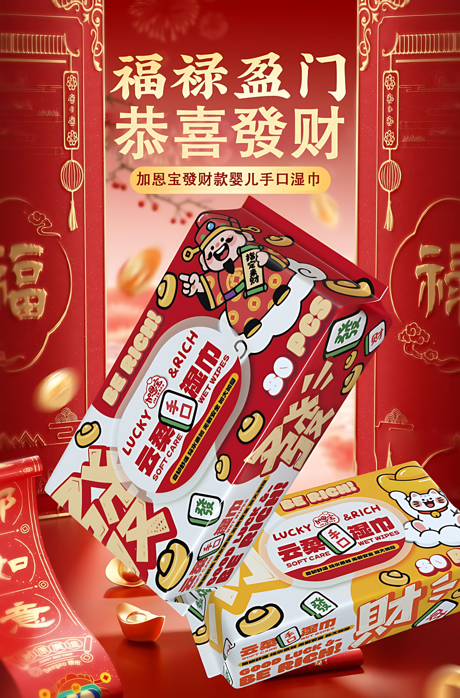 加恩宝手口湿巾80抽纯水婴幼儿专用大包 新年款發财湿巾*2包两款随机发