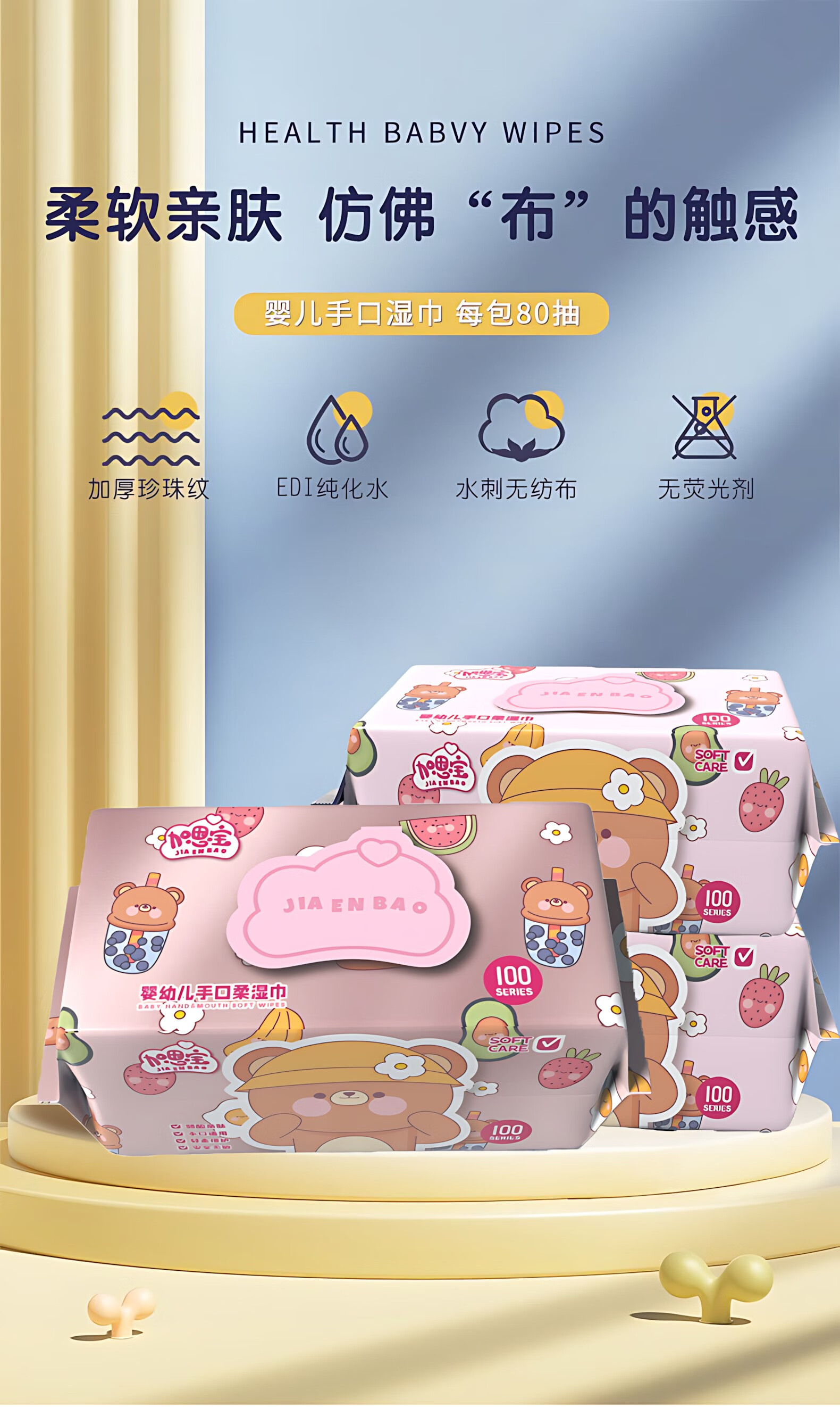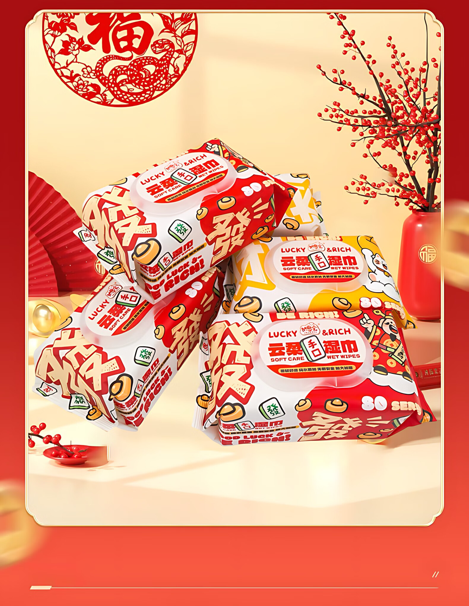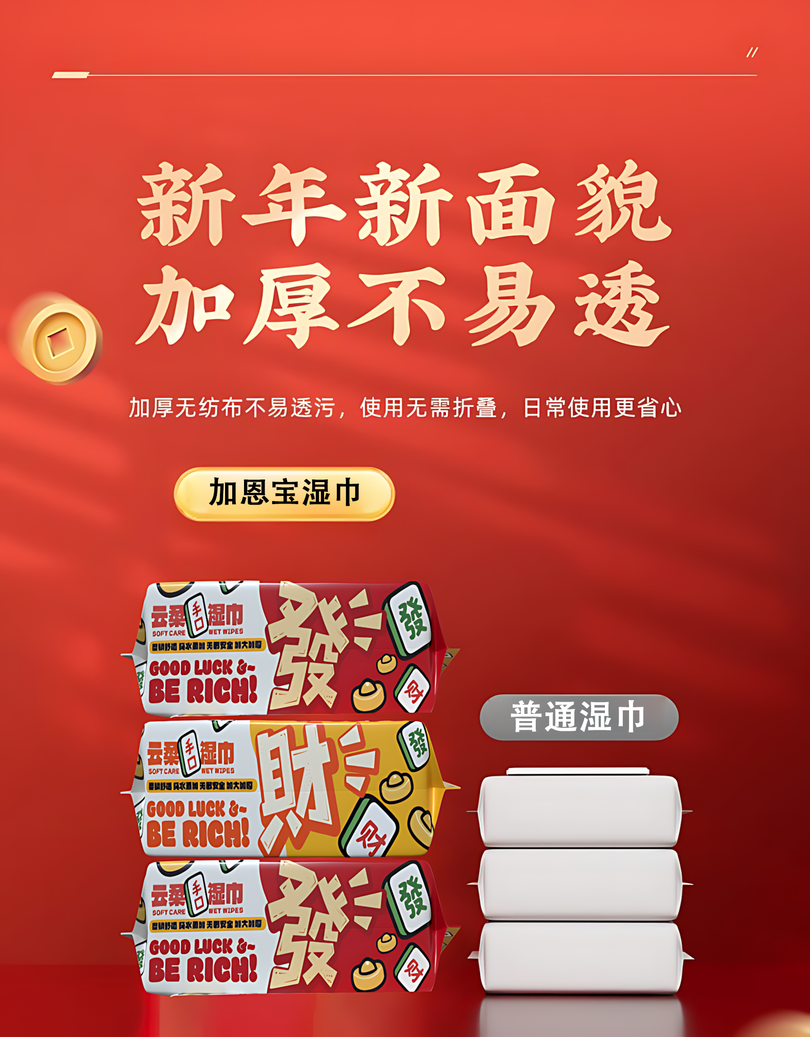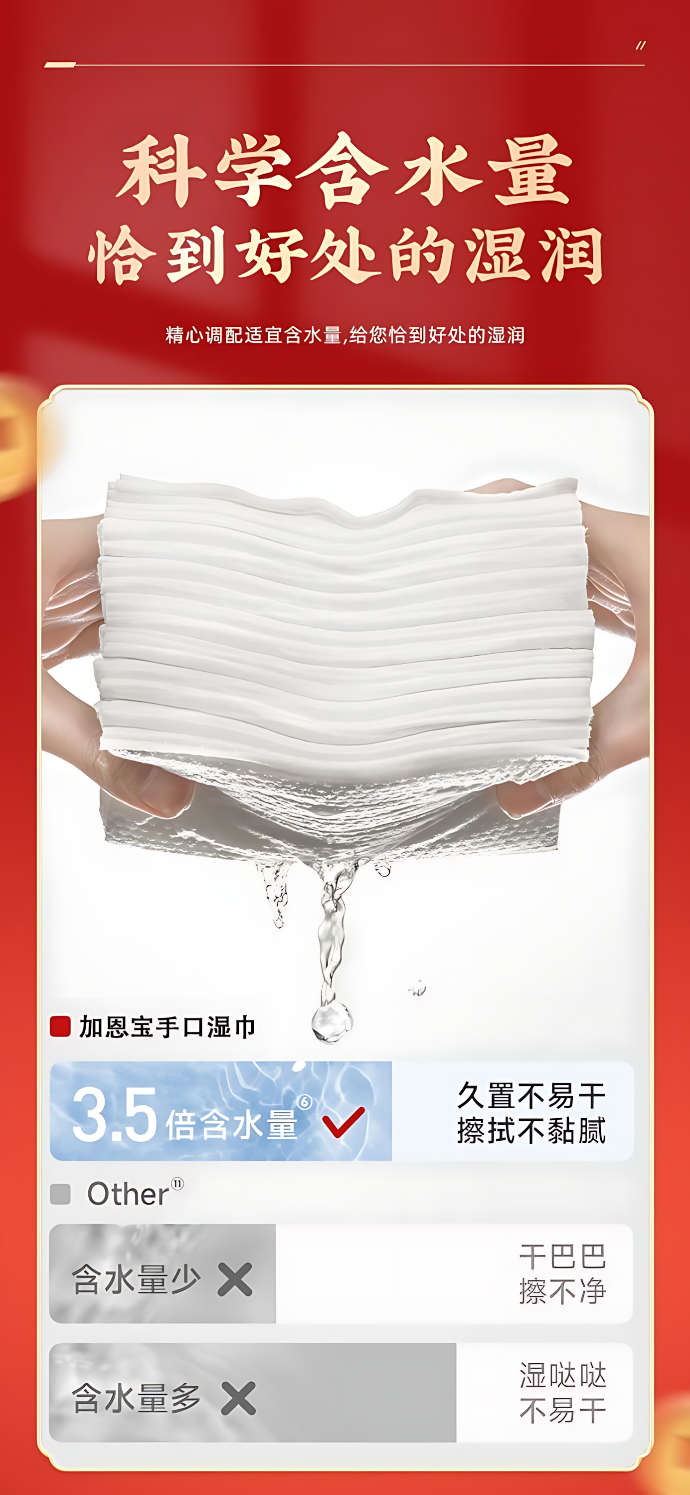 加恩宝手口湿巾80抽纯水婴幼儿专用大包 新年款發财湿巾*2包两款随机发