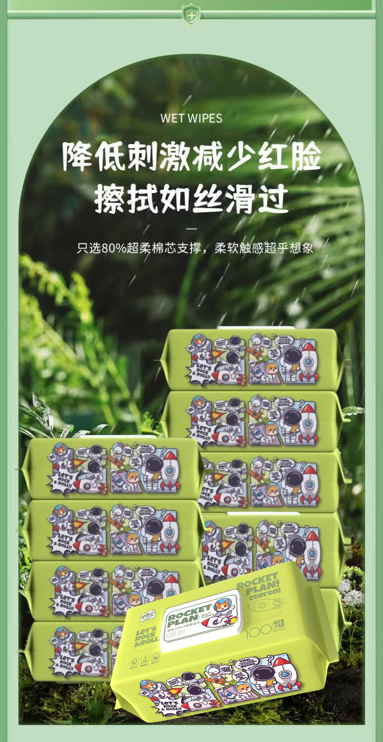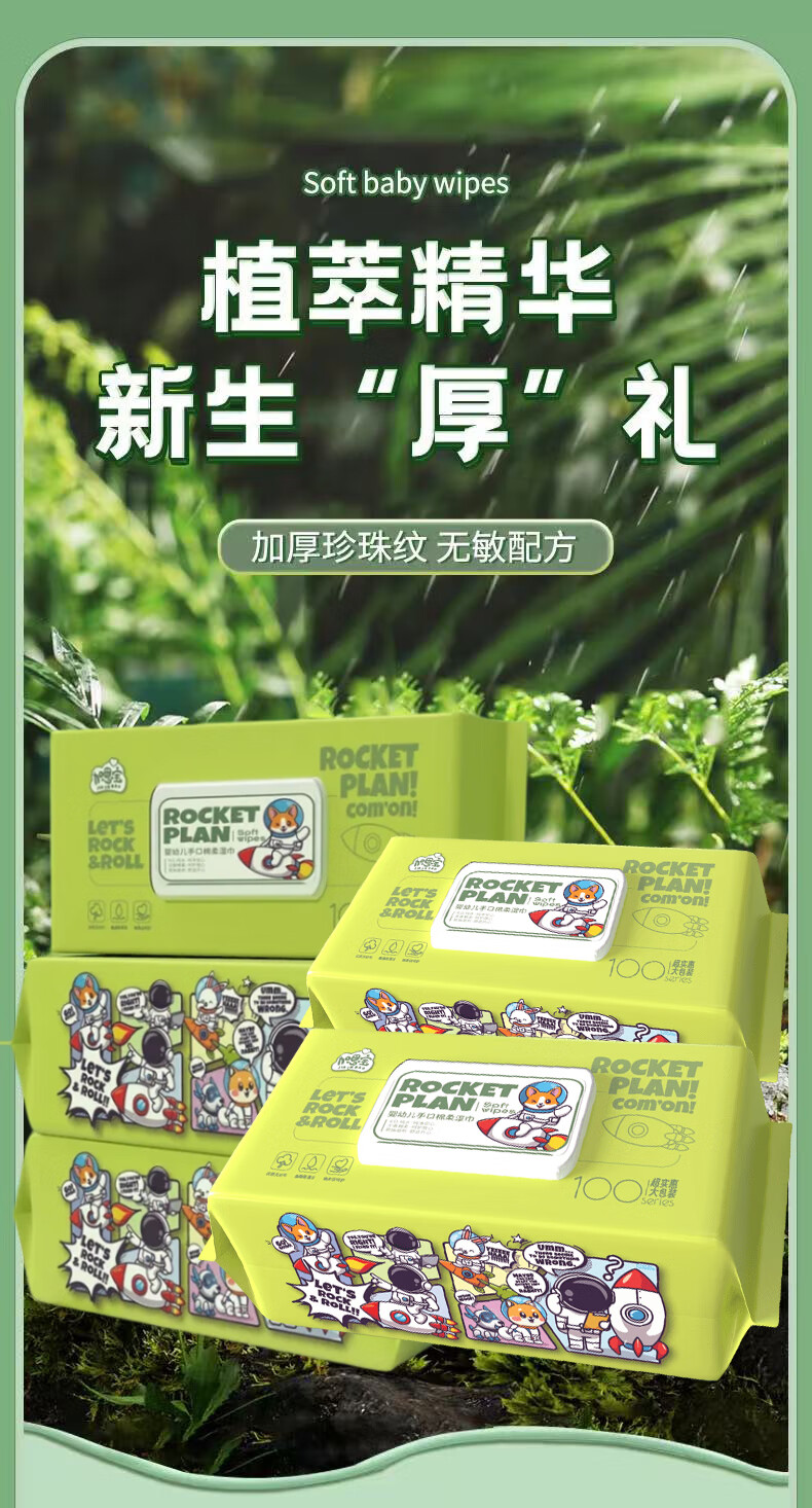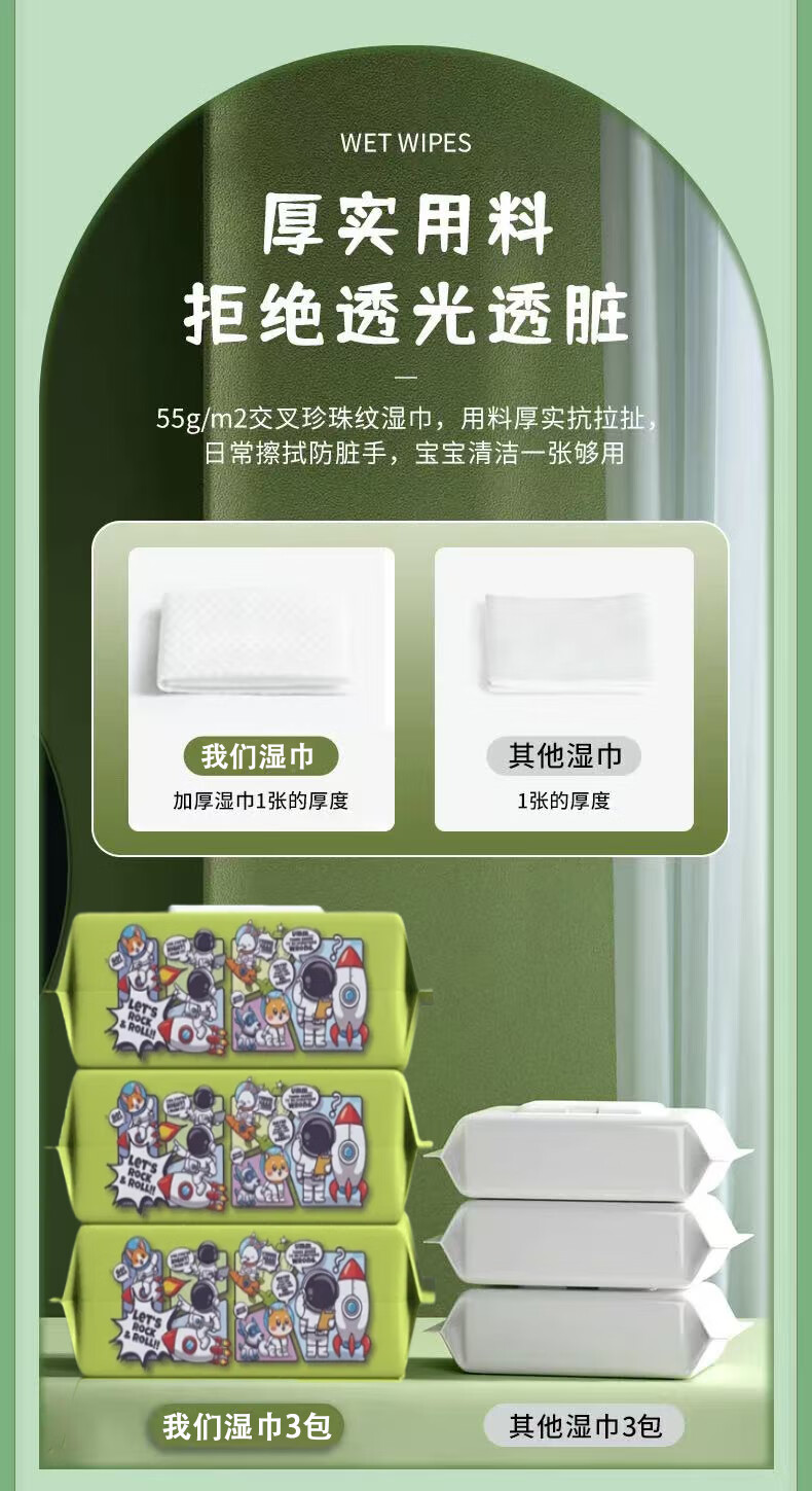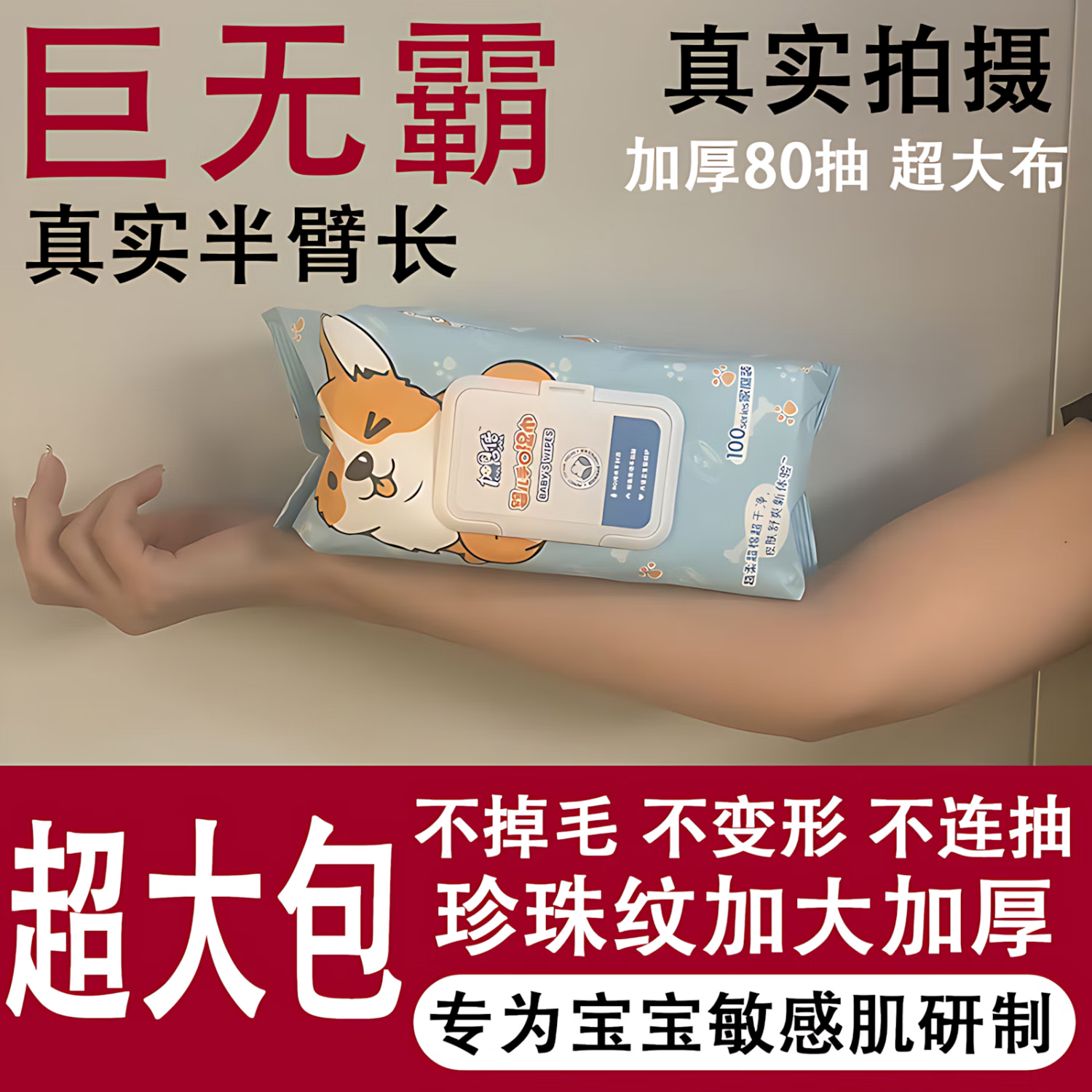 加恩宝手口湿巾80抽纯水婴幼儿专用大包 新年款發财湿巾*2包两款随机发