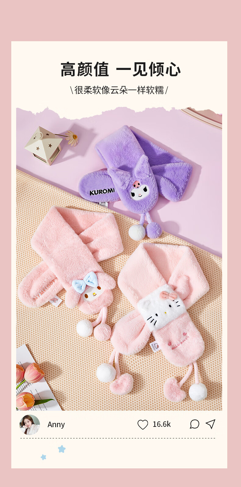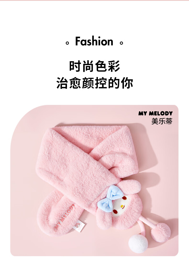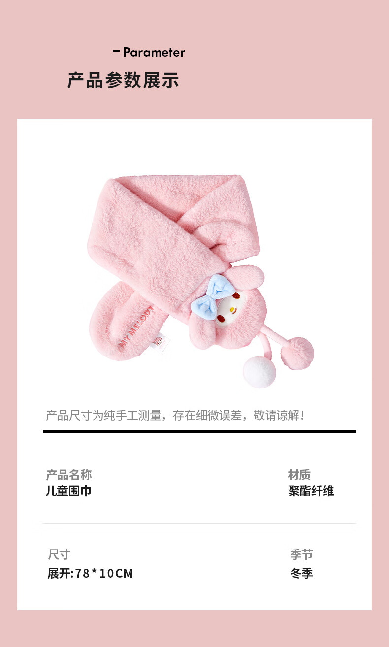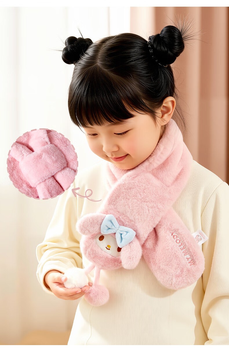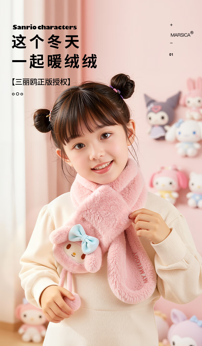 MARSICA三丽鸥儿童围巾毛绒围脖保暖护颈冬季女童仿兔毛围领脖套新年礼物 美乐蒂【仿兔毛/不扎脖】