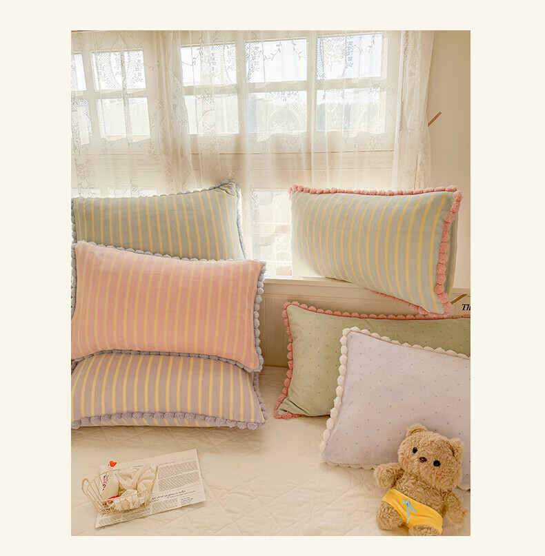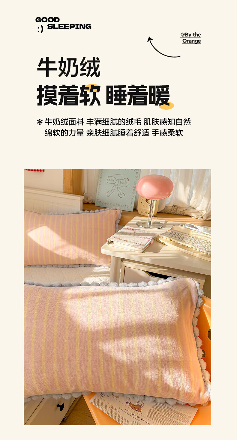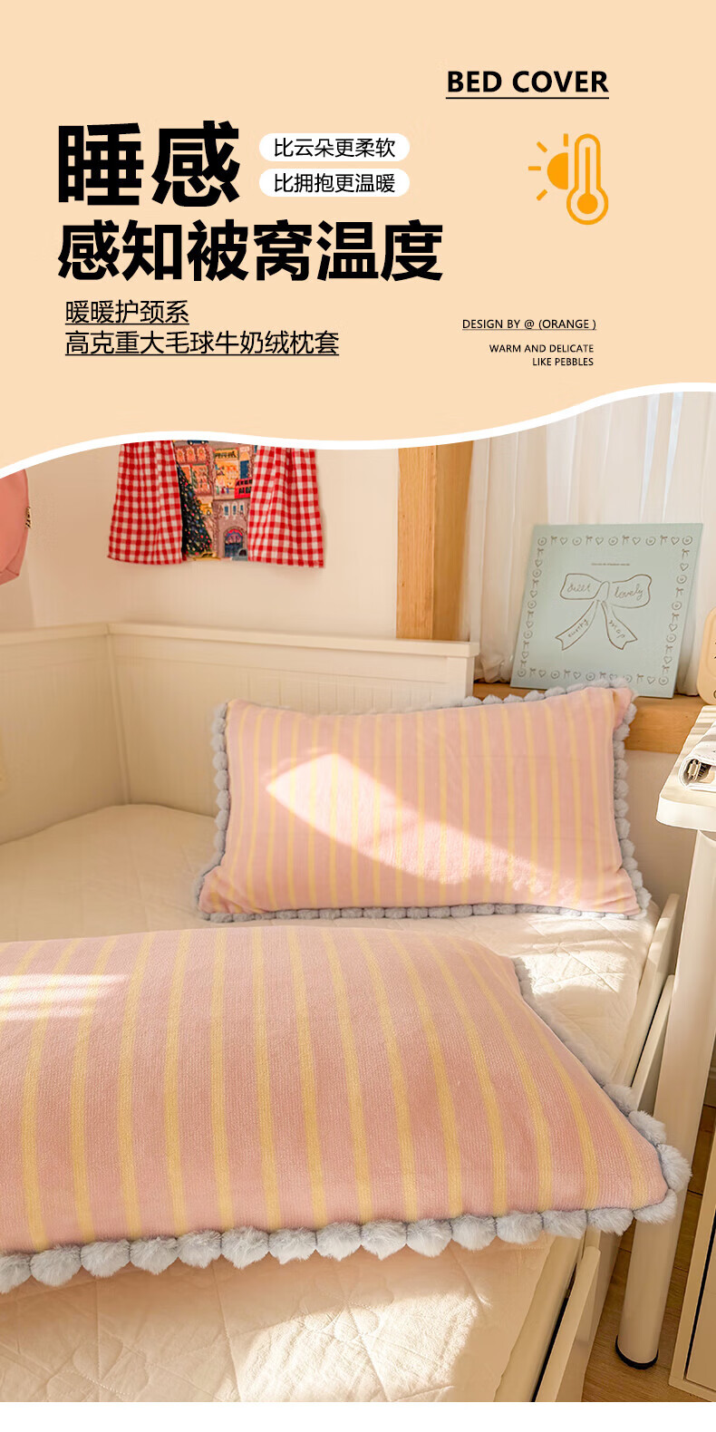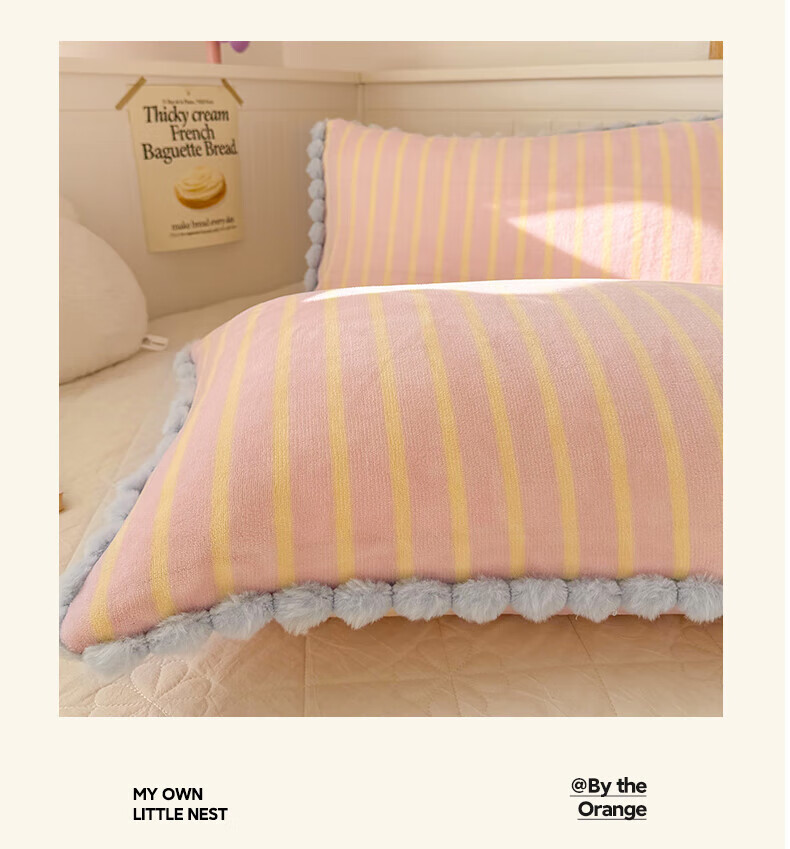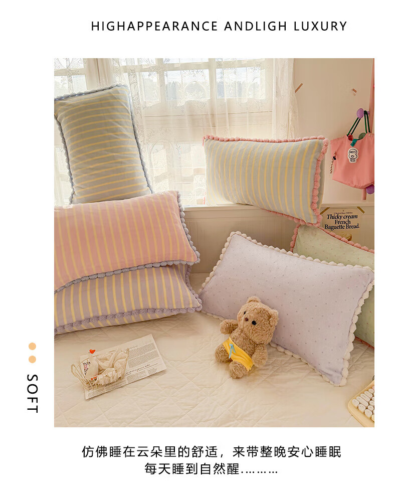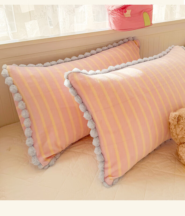 猫人(MiiOW)牛奶绒毛球花边枕头套一对装48x74加绒保暖珊瑚绒35x55枕芯内胆套 落苏紫【高克重牛奶绒】单只装 35cmX55cm