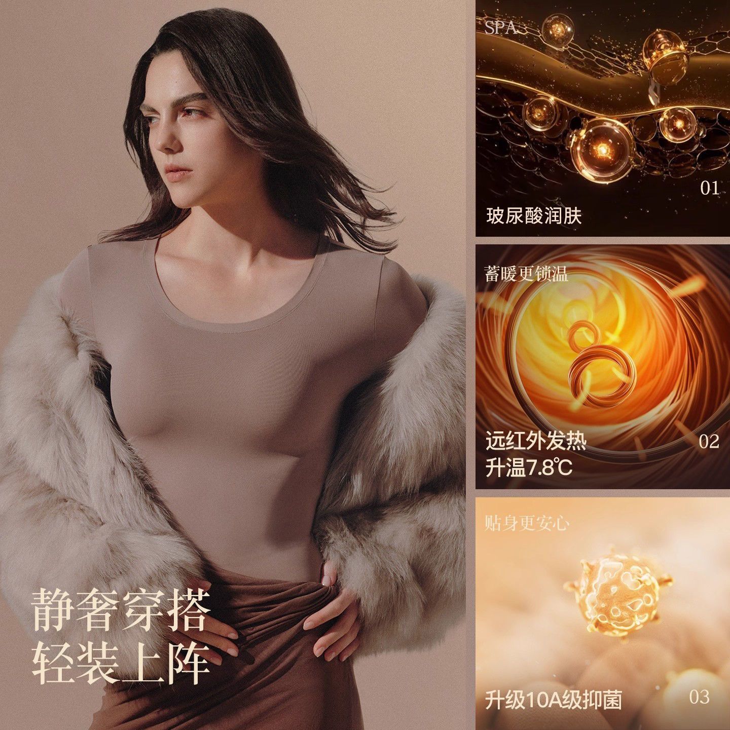 【都市丽人】山茶花美肤衣保暖内衣女超薄恒温秋冬无痕修身肌底衣